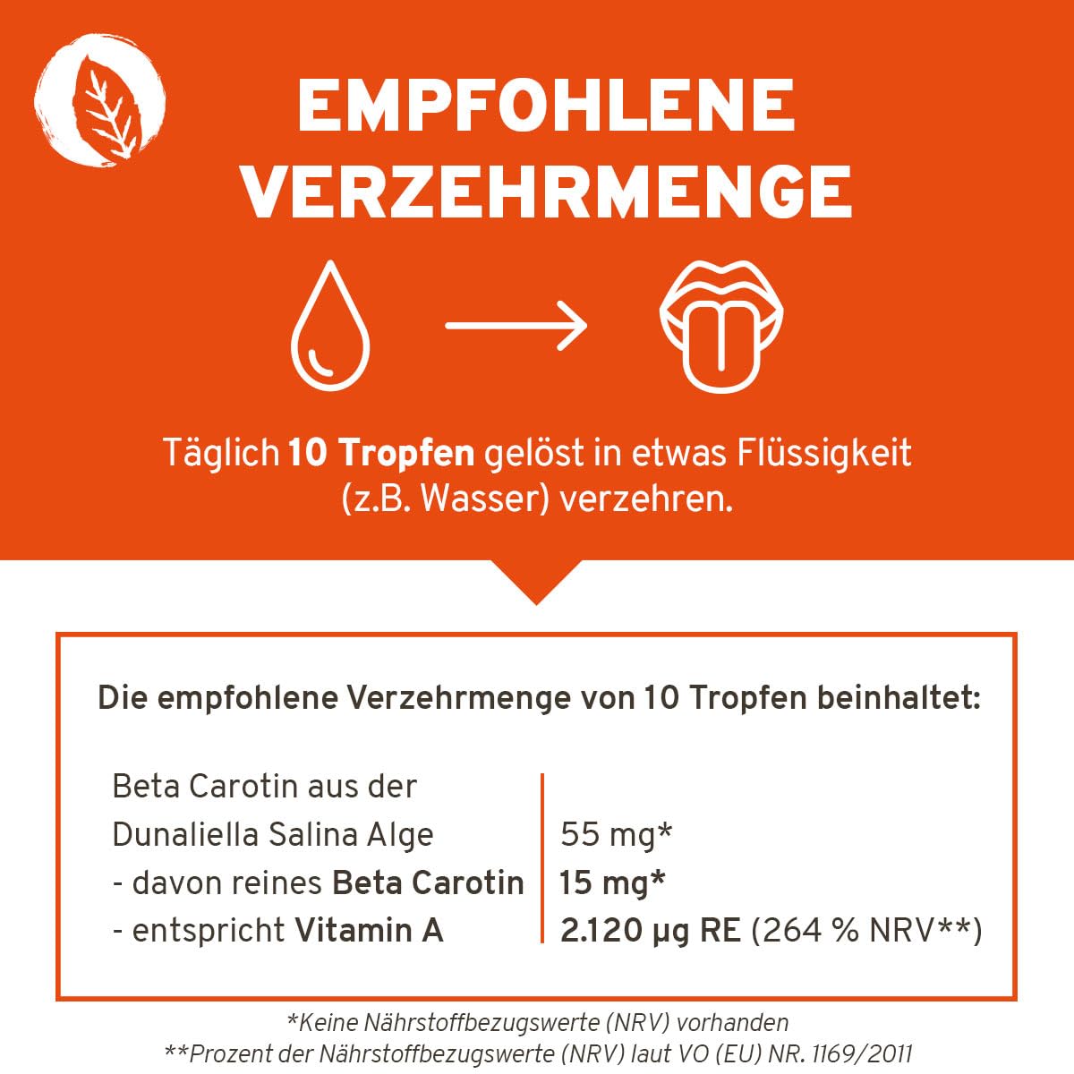 - HIGH BIOAVAILABILITY | The drops are highly dosed - 10 drops contain 15 mg of pure beta carotene, which corresponds to 2,120 g RE vitamin A (264% NRV). The solution in high-quality olive oil increases the bioavailability of the beta carotene.