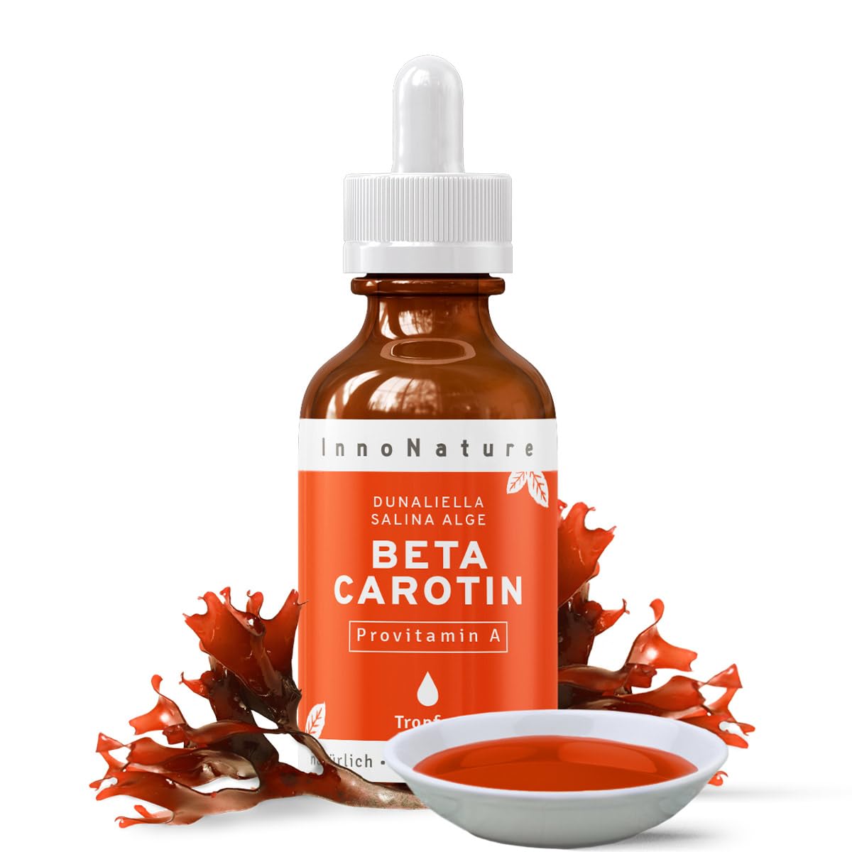 InnoNature Beta Carotene Drops | from the alga Dunaliella Salina | 30ml, high dose with 15 mg of pure beta carotene, 2,120 µg RE vitamin A per 10 drops