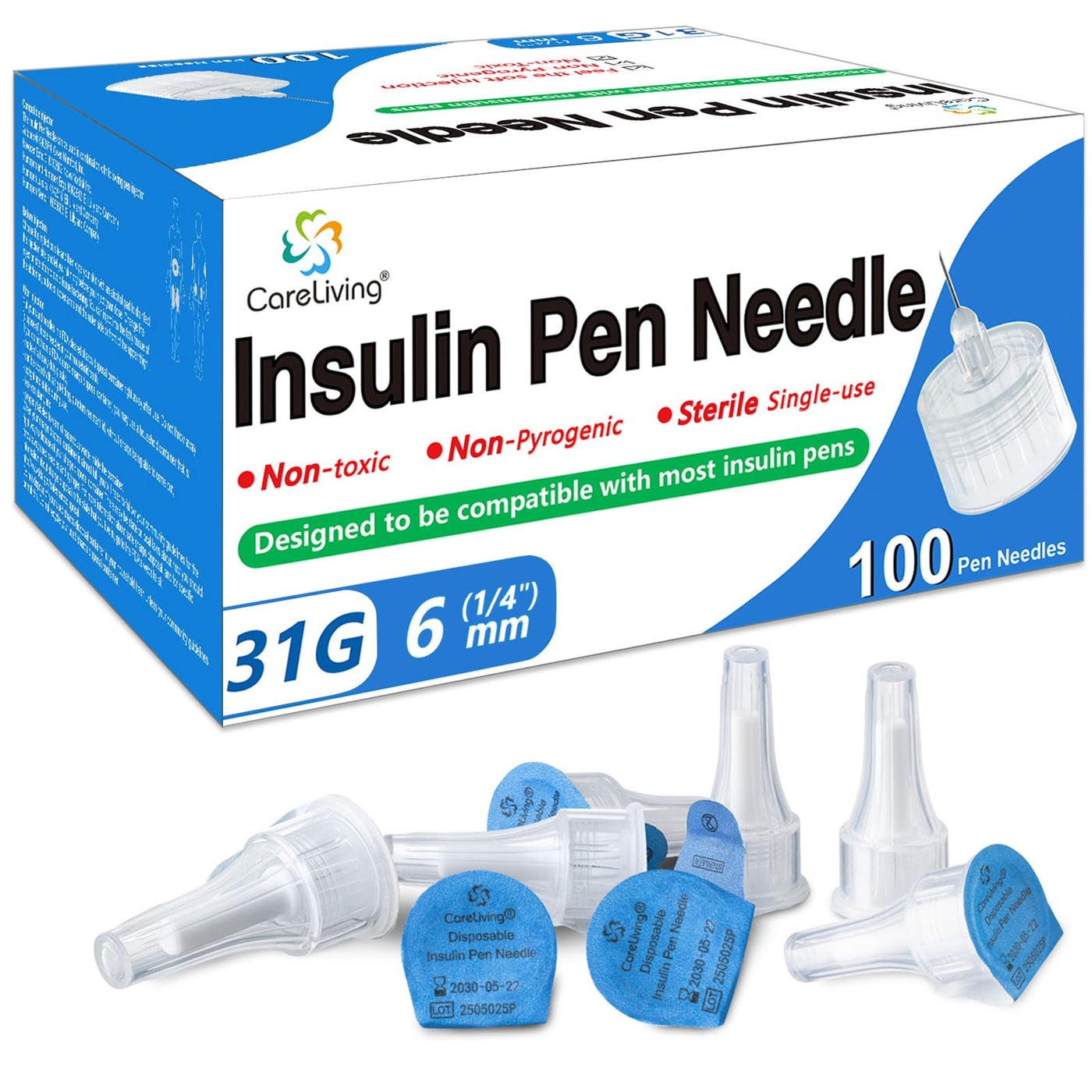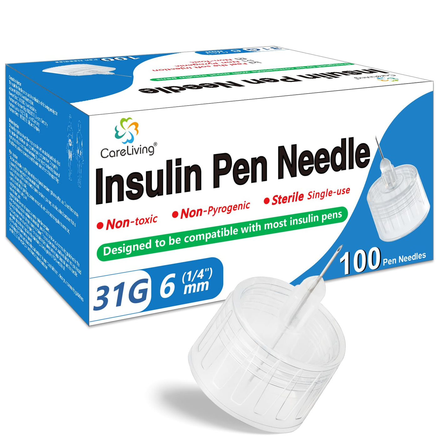 Insulin Pen Needle 31G 6 mm (1/4”), 100 Count, Universal Fit Compatible with Most Pen Injector Device, Ultra-Thin for Comfortable Insulin Injection