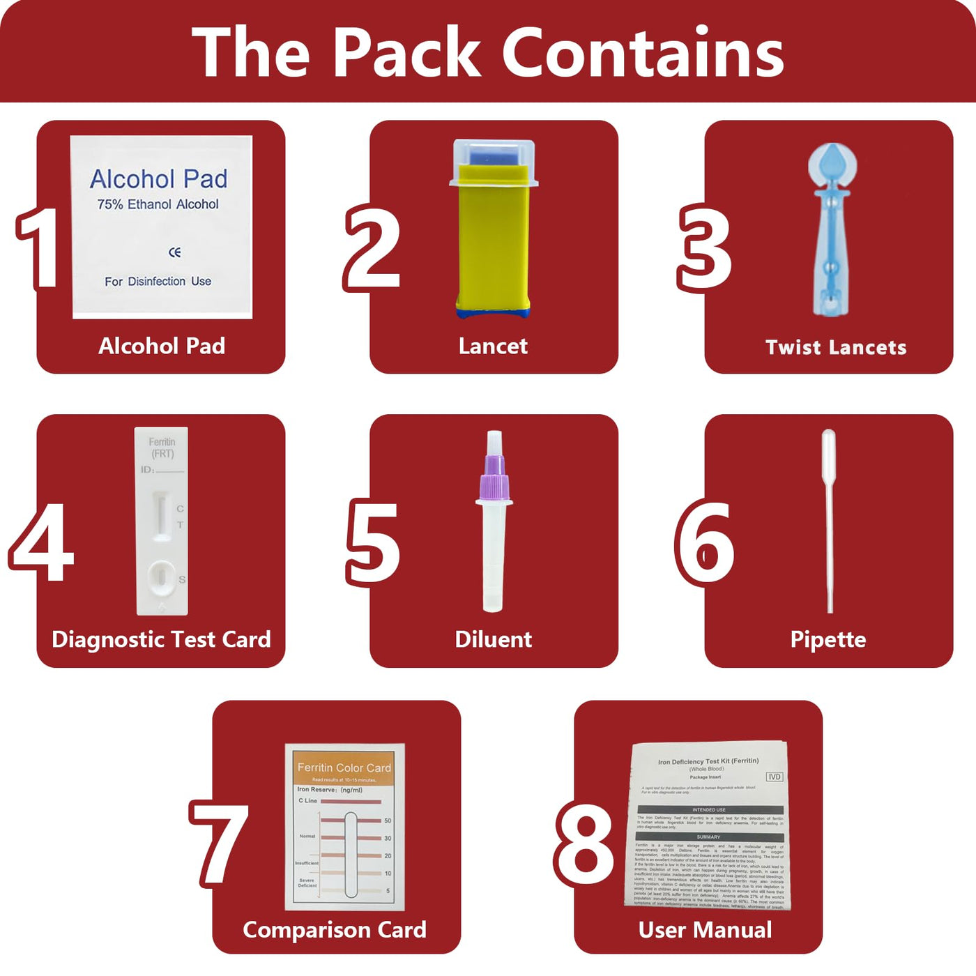 - Quick and Easy Iron Deficiency home self-testing kit requires no specialized knowledge.