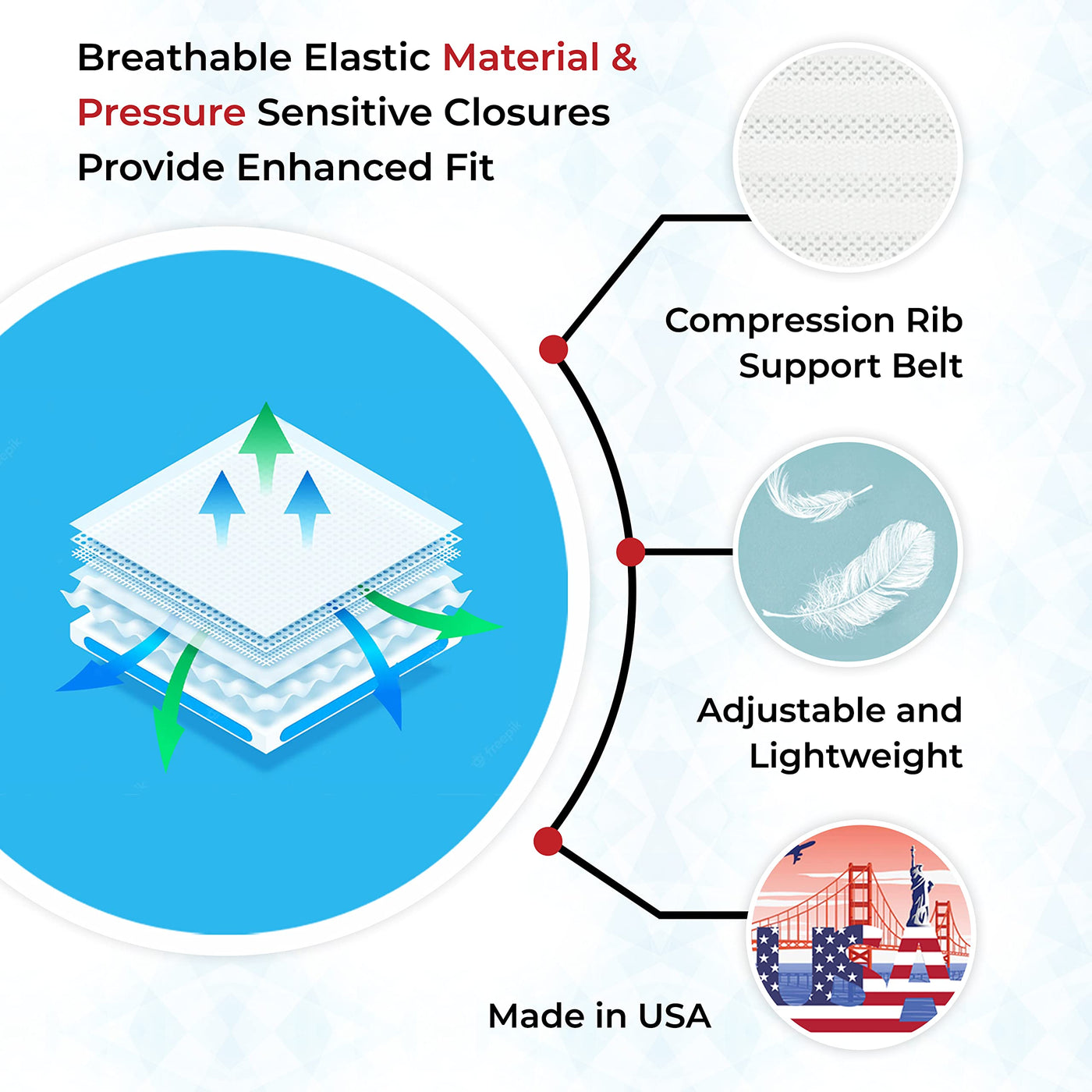 - COMFORTABLE FIT: ITA-MED rib support can be worn inconspicuously under most clothing. Made of a premium polyester, nylon & Lycra fabric for optimum breathability. A breathable elastic material and pressure-sensitive closures provide enhanced fit.