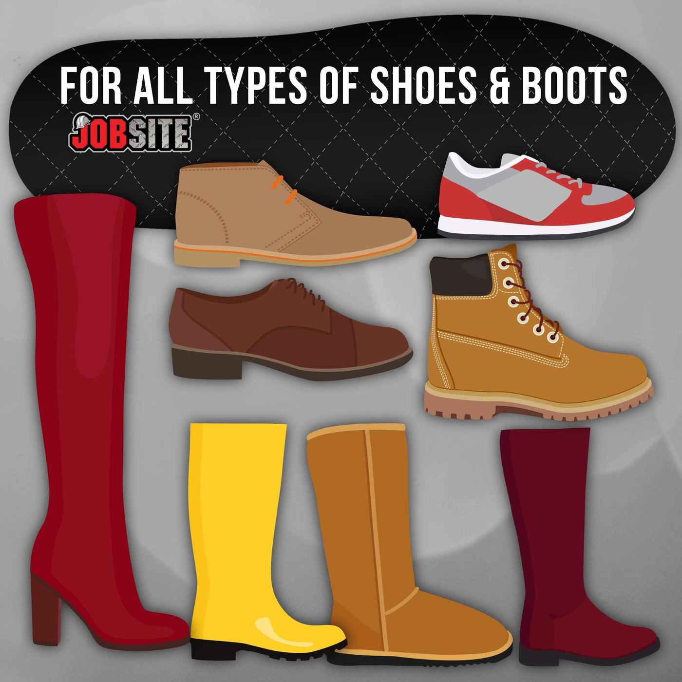 Warm Feet 3M Thermal Insole The original 3M Thinsulate Insulation has unique microfibers that are far smaller than other insulation materials, efficiently provides warmth and helps trap body heat while allowing moisture to escape and allows for a thin, lightweight, low profile, making this insole one of the most powerful on the market. The thicker pillow-top cushions your feet while standing, walking, or running. Multi-layer performance materials provide comfort while wicking away moisture for dryness. These insoles conform to your feet and provide exceptional warmth. Great as winter insoles to use while working outdoors in the cold or while snowboarding, skiing, snowmobiling, hunting, ice fishing, shoveling snow, working, and any other cold environment activity. JobSite Warm Feet Thermal Insoles are made with 3M THINSULATE Insulation / Isolant. The original 3M Thinsulate Insulation has unique microfibers that are far smaller than other insulation materials, efficiently provides warmth, and helps trap body heat while allowing moisture to escape, and allows for a thin, lightweight, low profile, making this insole one of the most powerful on the market. The thicker pillow-top cushions your feet while standing, walking or running. Multi-layer performance materials provide comfort while wicking away moisture for dryness. These insoles conform to your feet and provide exceptional warmth. Great as winter insoles to use while working outdoors in the cold or while snowboarding, skiing, snowmobiling, hunting, ice fishing, shoveling snow, working, and any other cold environment activity. Trim to fit with cut lines, so they fit most shoes and boots. Read more Professional Boot & Shoe Stretch Spray Extra Wide Boot Scrubber Premium Boot Puller No Tye Shoelaces Elastic Curly Expander Shoe Horn Extra Long Handle Original Shoe Boot Dryer