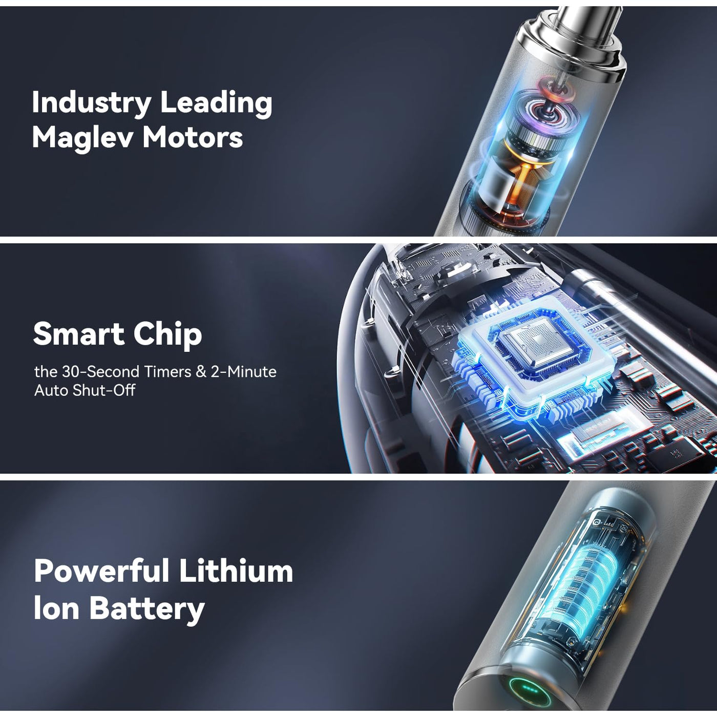 - [Built-in 2 Min Smart Notification Timer] This rechargeable electric toothbrush has a built-in 2-minute smart timer that pauses every 30 seconds to remind you to switch brushing zones. It helps you adhere to the brushing time recommended by dental professionals while cultivating healthy oral care habits.