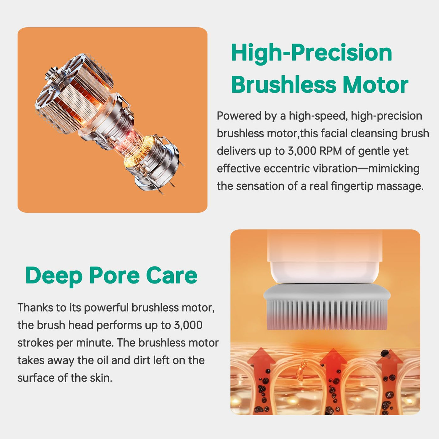 - [Convenient Wireless Charging] Ditch the cords! Our sleek brush features magnetic wireless charging simply place it on the dock. Its compact, lightweight design, making it the perfect companion for keeping your skin glowing anywhere, anytime.