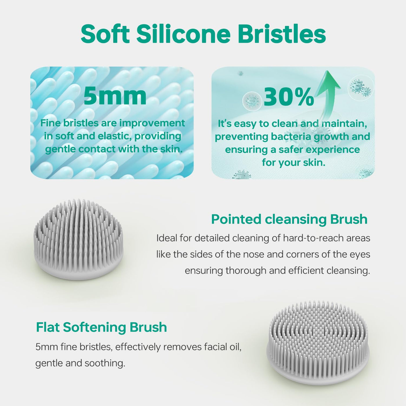 - [2 Silicone Heads] Comes with 2 interchangeable brush heads featuring incredibly soft silicone.