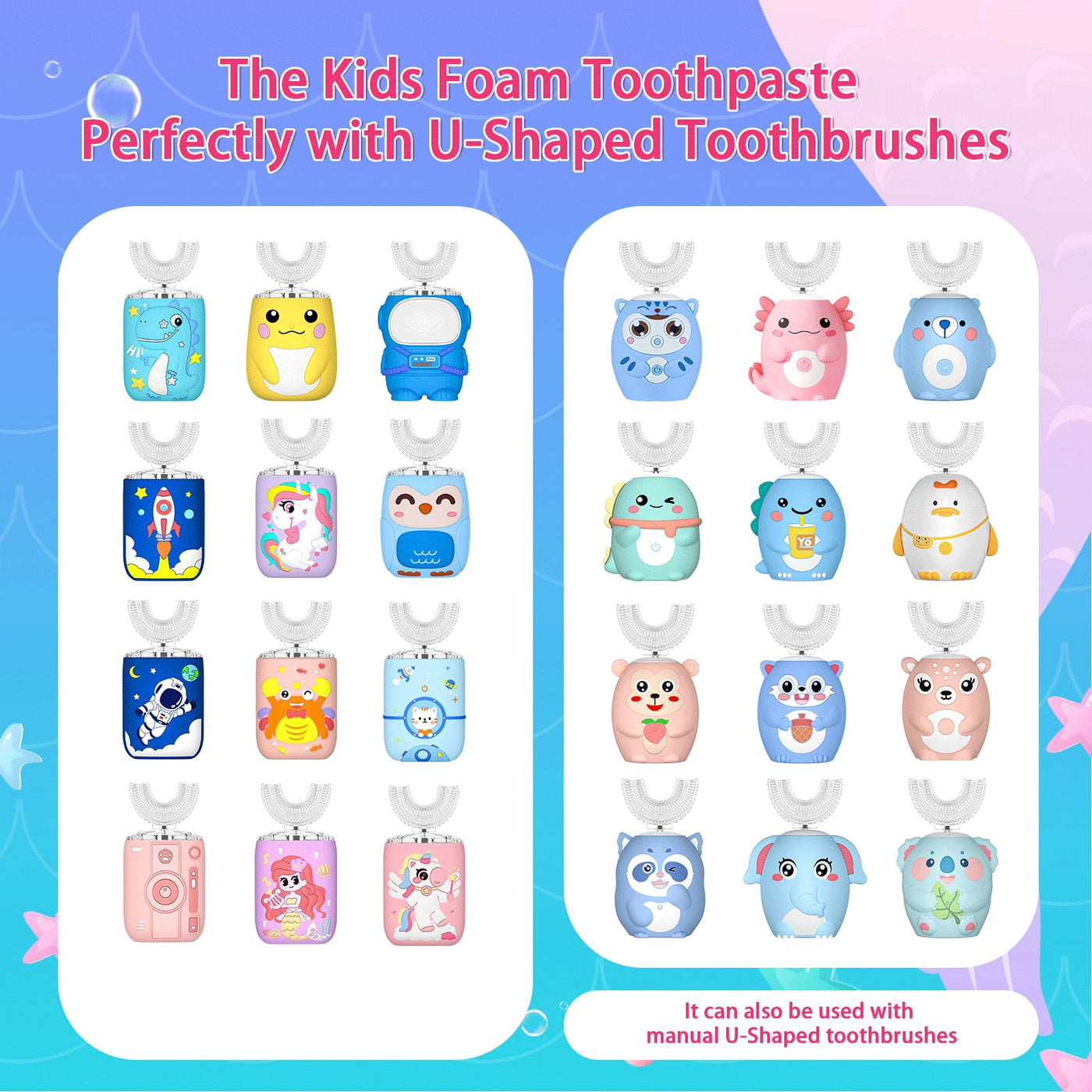 - Kids Toothpaste:Our Foam Toothpaste with Rich and Ultra-fine foam, contain xylitol, vitamin C and menthol, penetrate the enamel crevices and remove food particles, and deep stains embedded there,enhance oral care,protect teeth health