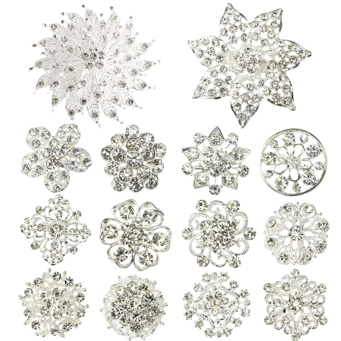 - Great Value - Comes in a set of 14 Rhinestone Crystal brooch pins - 2 large and 12 small in size