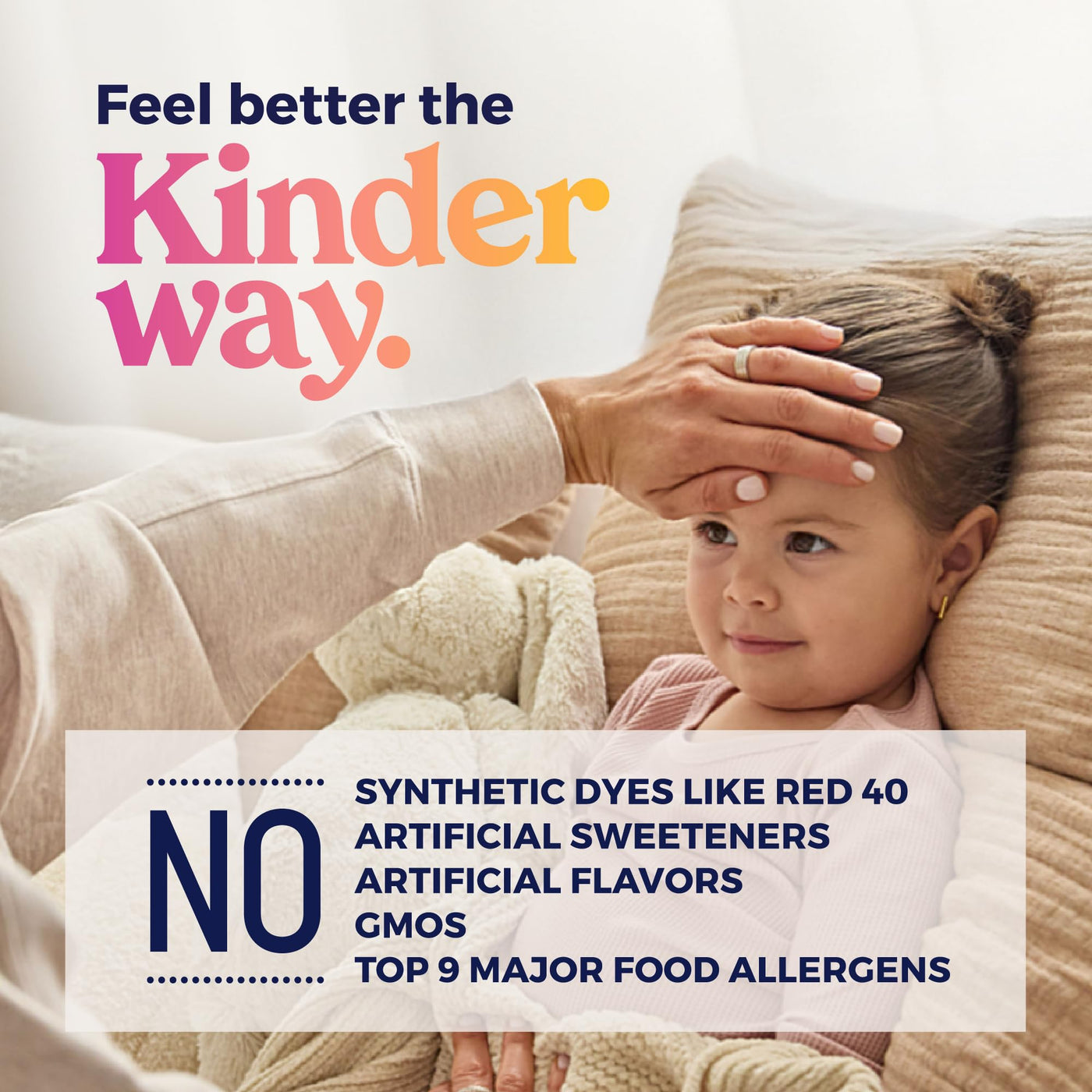 KinderMed Kids’ Allergy is made with the same effective, active ingredient (diphenhydramine HCl) as the leading brand but without dyes, parabens, GMOs, high fructose corn syrup, artificial flavors or sweeteners. Doctor-formulated with only 5 ingredients, KinderMed Kids’ Allergy is proven medicine that temporarily relieves symptoms due to hay fever or upper respiratory allergies including runny nose, sneezing, itchy nose, itchy throat, and itchy, watery eyes in children ages 6 to 11. KinderMed is Non-GMO Project Verified, vegan, gluten-free, kosher, and free from the top 9 major food allergens. Dosing cup included.
