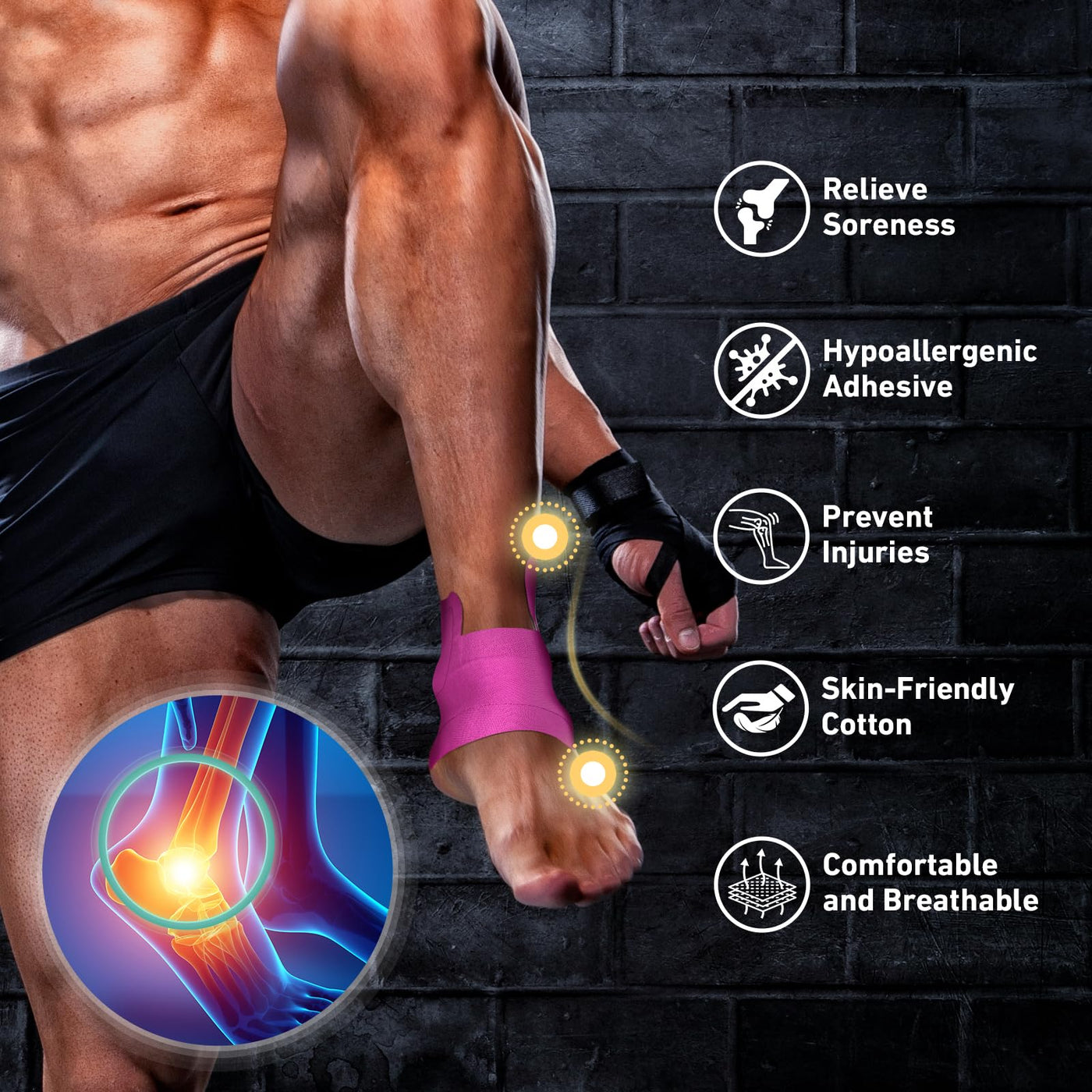 - INJURY PREVENTION AND MOBILITY SUPPORT - Ankle tape is suitable for many sports, providing crucial support and stability to the ankle joint, which is particularly vulnerable to sprains and other injuries during physical activities. Whether youre participating in sports like basketball, soccer, running, tennis, volleyball, or gymnastics, ankle tape helps prevent injuries by reinforcing the ankle and reducing excessive movement. It also aids in the recovery of existing ankle injuries by offering consistent support and limiting strain.