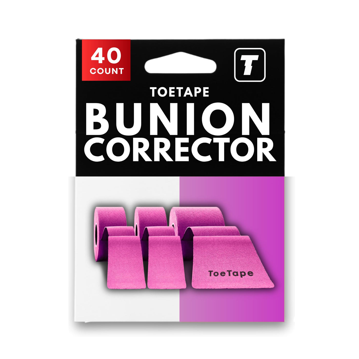Kinesiology Tape for Moderate Bunions, Big Toe Sprains, Pain Relief and Support | 40 Pre-Cut Applications Included | Hypoallergenic and Sweatproof Kinesio Tape for Toe Joint Support (Pink)