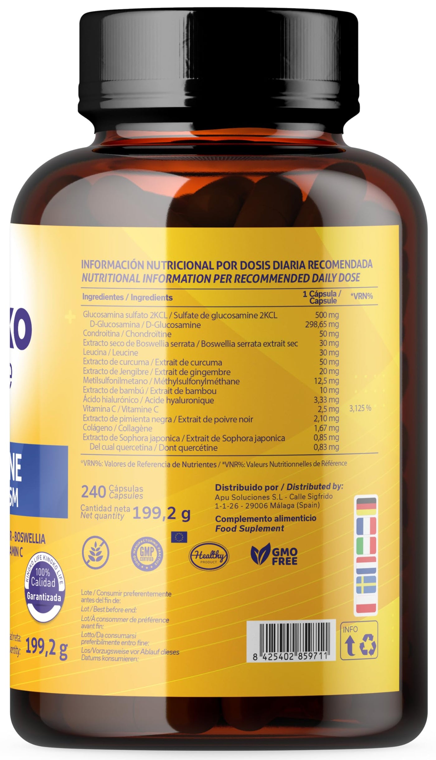 - Innovative formula for joints: Combines glucosamine, chondroitin and MSM in 240 capsules to support the health and elasticity of joints and cartilage and provide comprehensive care.
