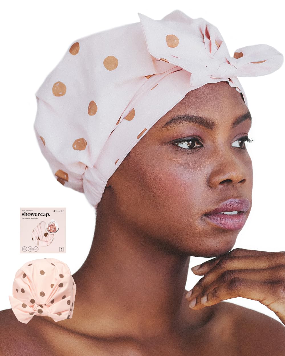 Kitsch Luxury Shower Cap for Women Waterproof - Reusable Shower Cap, Hair Cap for Shower, Waterproof Hair Shower Caps for Long Hair, Non-Slip Cute Shower Cap One Size, Chic Shower Bonnet - Blush Dot
