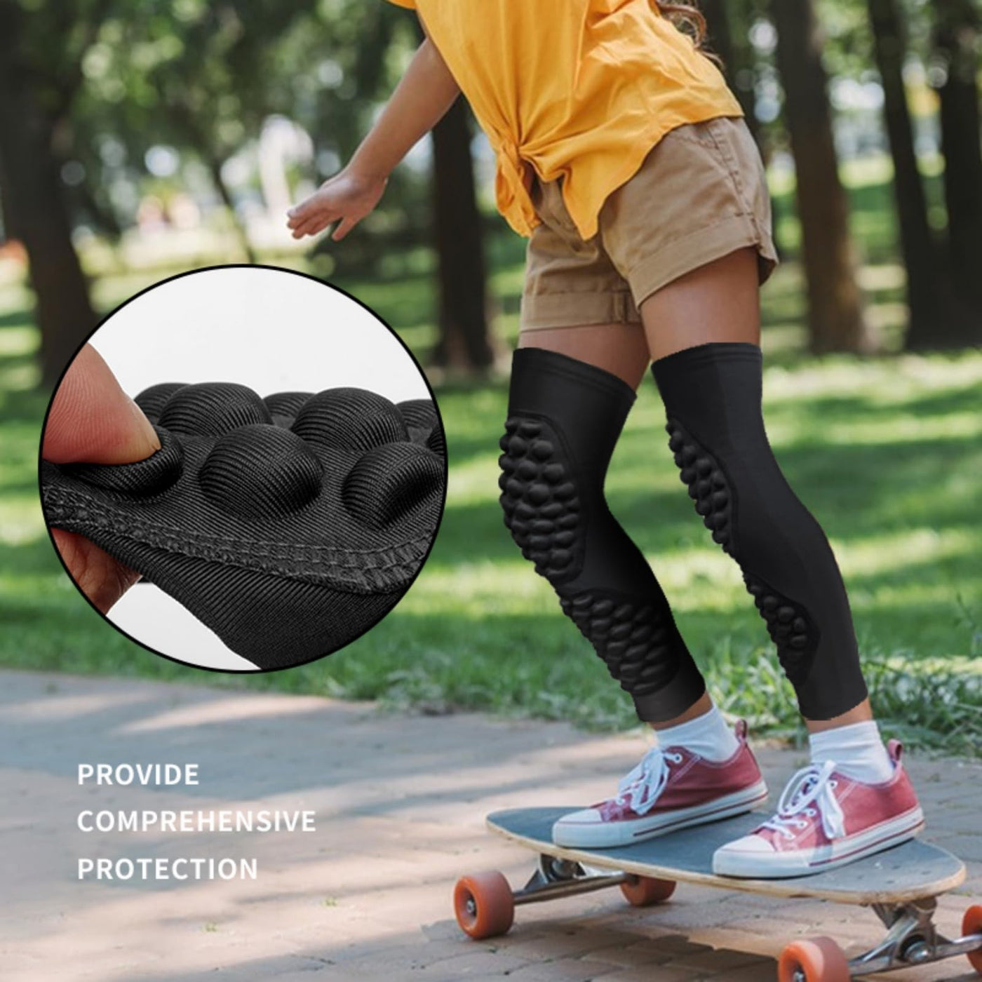 - Double Crashproof Knee & Calf Pads: Thick EVA pads on knee and calf provide more protection. Closed foam padding protects your boys and girls knees and calf from high impact activities and sports.