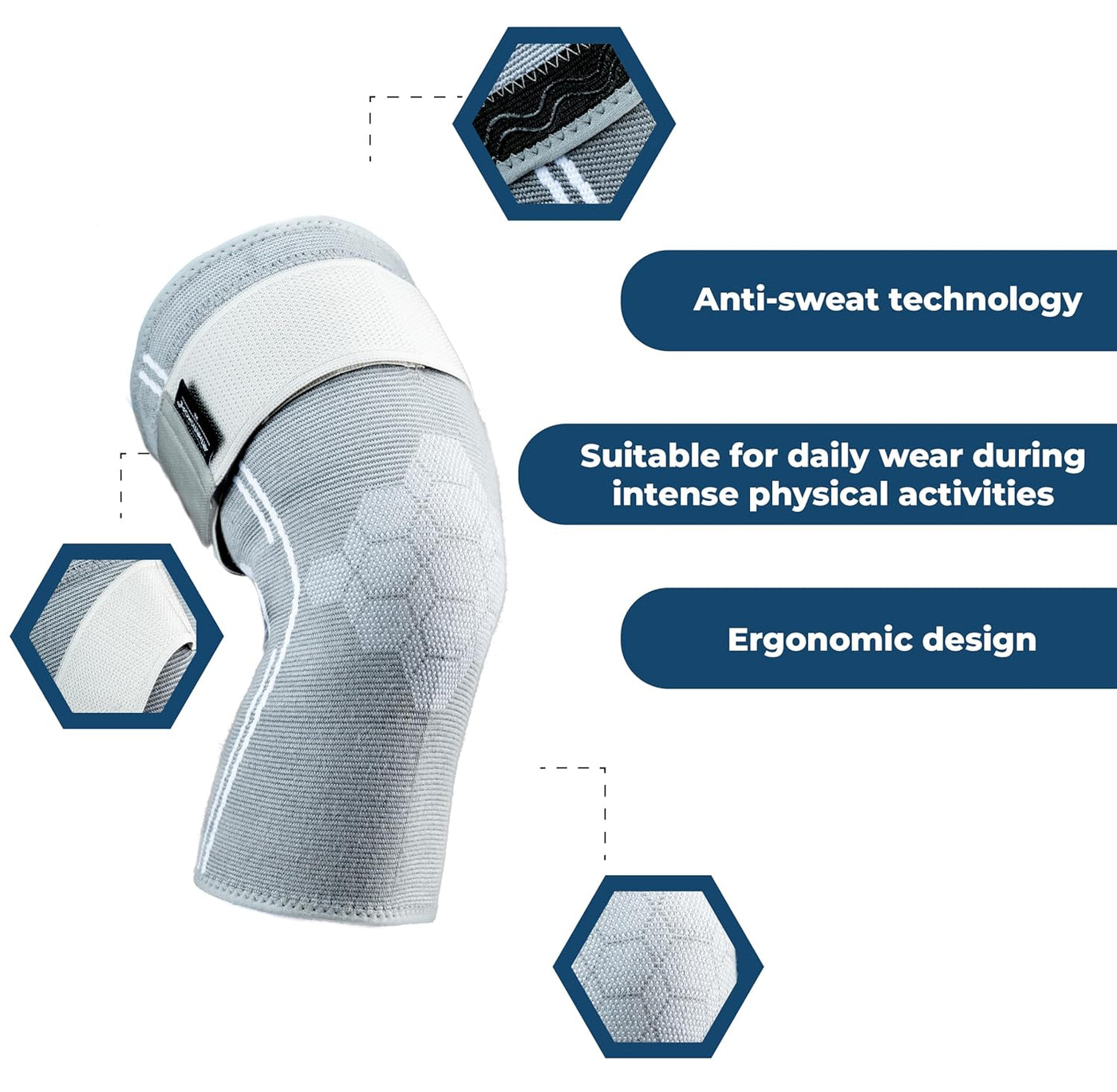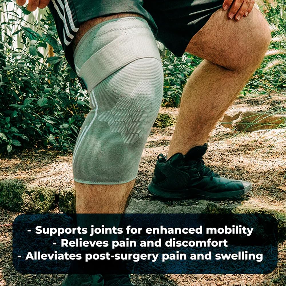 - Featuring our Anti-Rolldown Strap, these sleeves guarantee a secure fit that resists sliding, ensuring they remain comfortably in position even through intense activities. Anatomically shaped, sits perfectly without slipping. The strap creates the perfect structure that holds the knee in the correct place. This means you can comfortably walk, run, hike, or play sports like tennis, volleyball, soccer and basketball without having to keep fixing them.