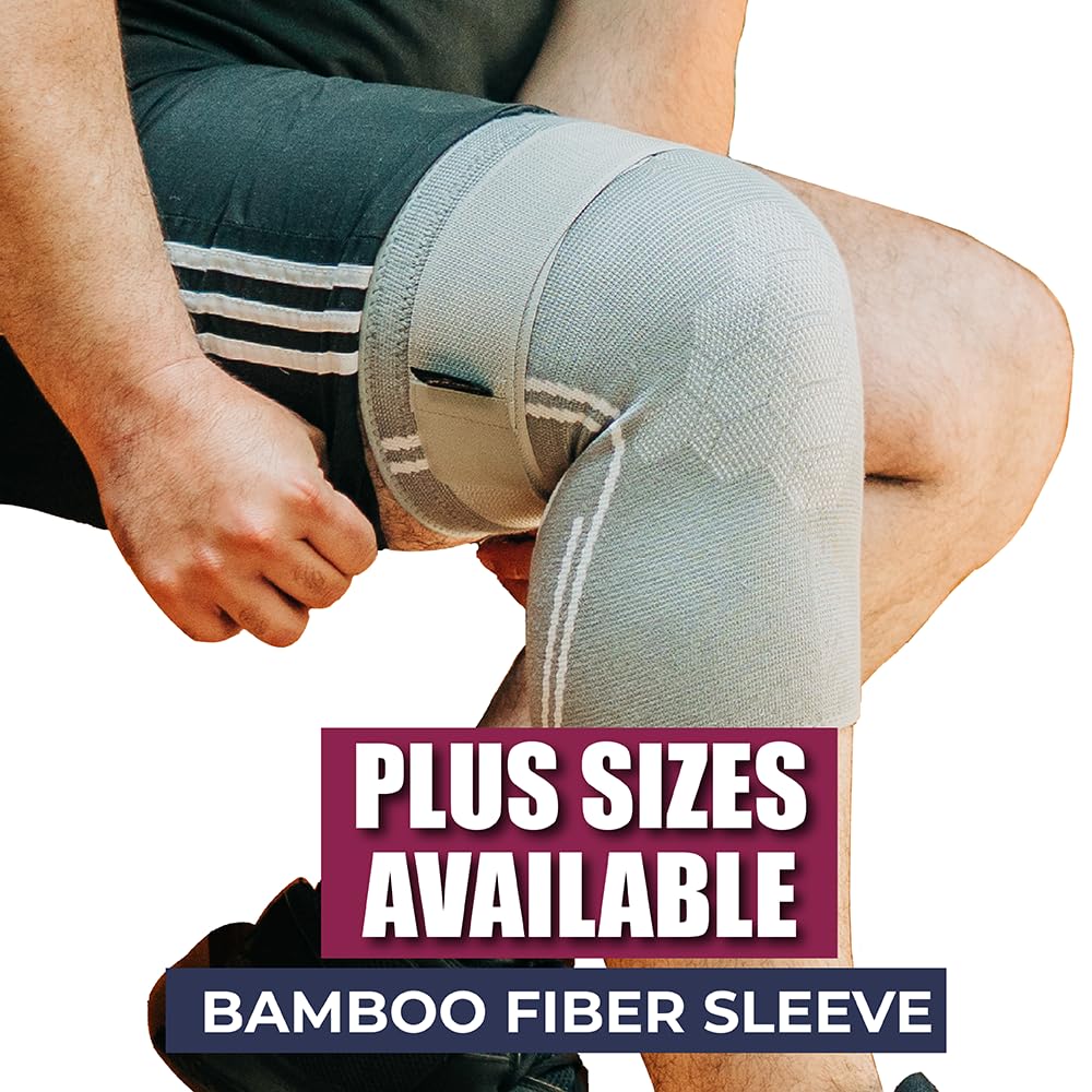 Knee Compression Sleeve made from Bamboo Rayon Fabric for Men and Women (XL) - Plus Size Knee Brace with Anti-Roll Down Strap, helps with Arthritis Pain, bone on bone, Injury Recovery, Meniscus Tear, Patellar Tendonitis and Inflammation Relief.