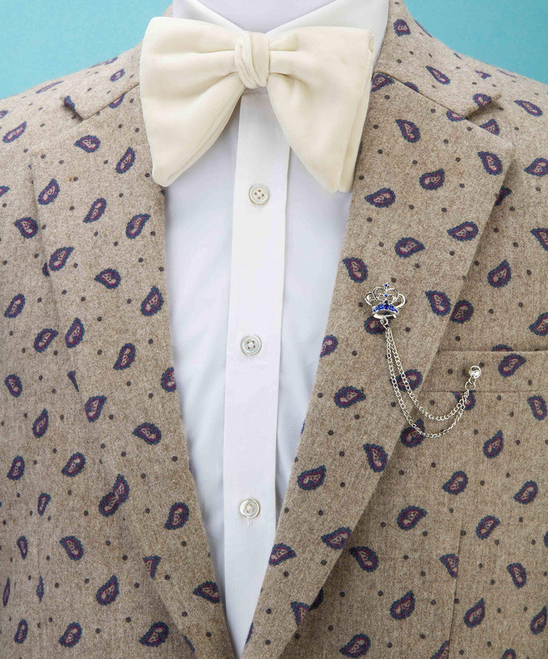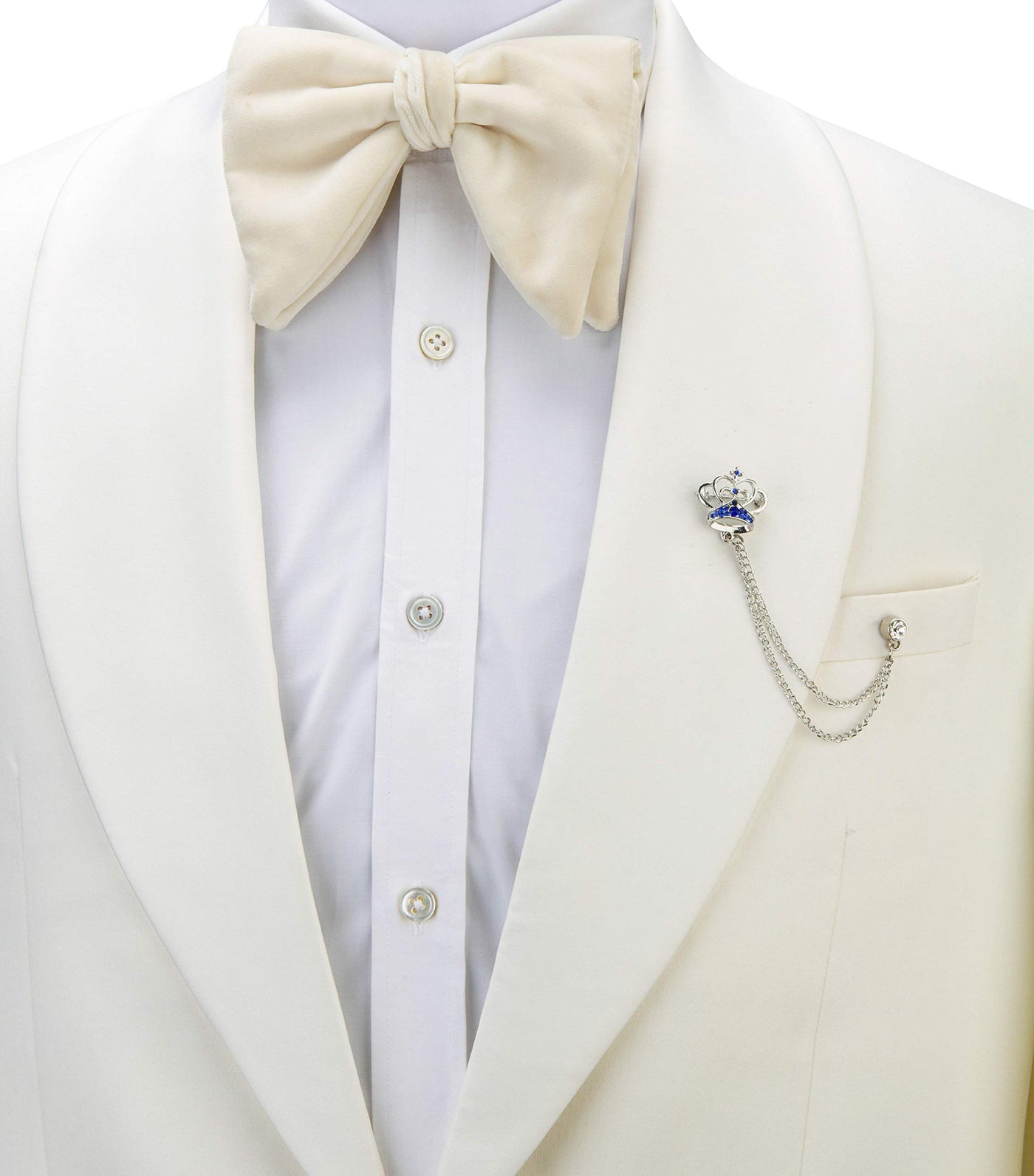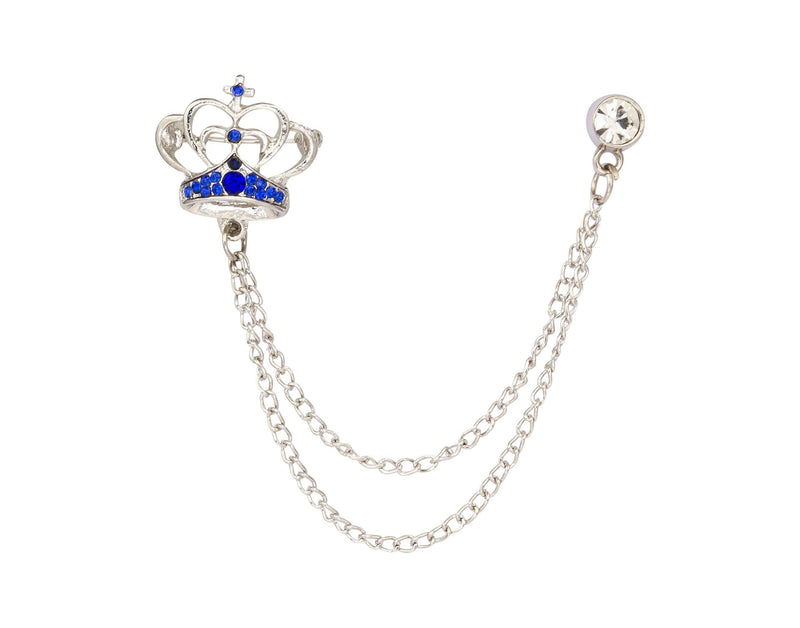 Knighthood Elegant Silver Crown With Blue Crystal Detailing Hanging Chain Metal Lapel Pin Brooch for Men