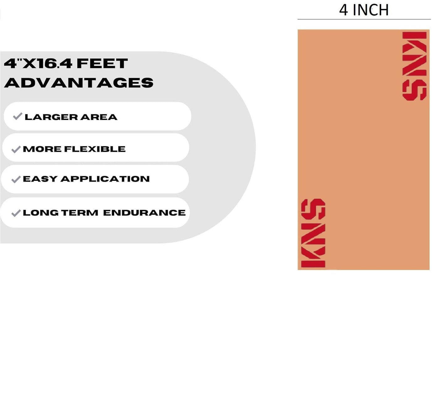 KNS Extra Wide Kinesiology Tape | Waterproof & Latex-Free | 4" Continuous Roll Athletic Tape for Muscle & Joint Support | Elastic Therapeutic Tape for Injury Recovery & Pain Relief | 4 inch x 16 feet