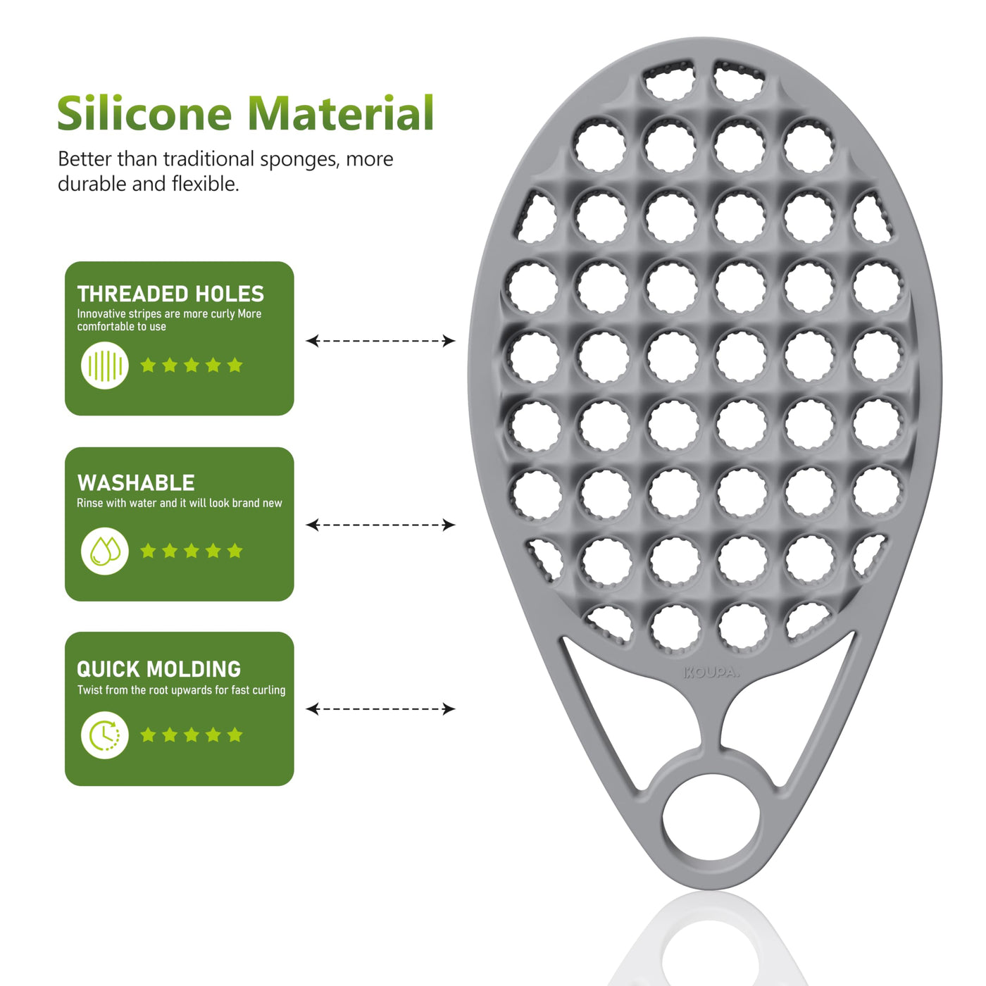 - One-Piece Design: After market research, our design team launched the one-piece silicone curling brush, unique spiral cavity + raised silicone surface, styling and enjoying massage at the same time, full of fun