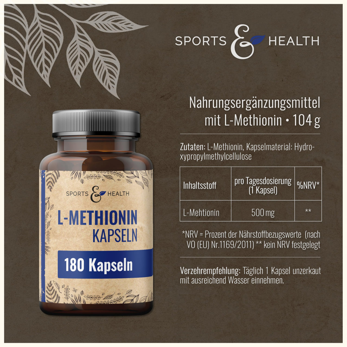 - Our L Methionine capsules are perfectly dosed. You already receive 500mg L methionine per daily dosage (1 capsule). Our L Methionine is free of additives.