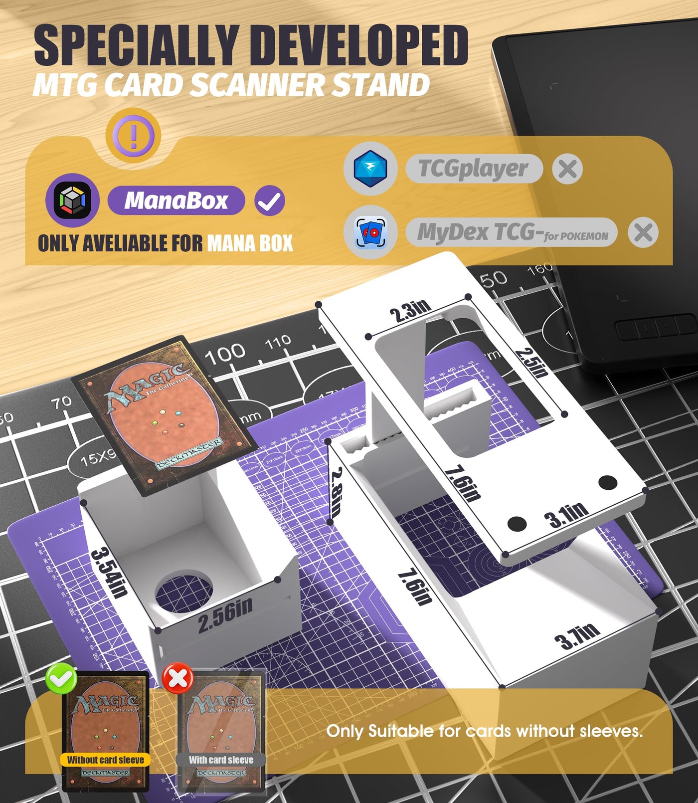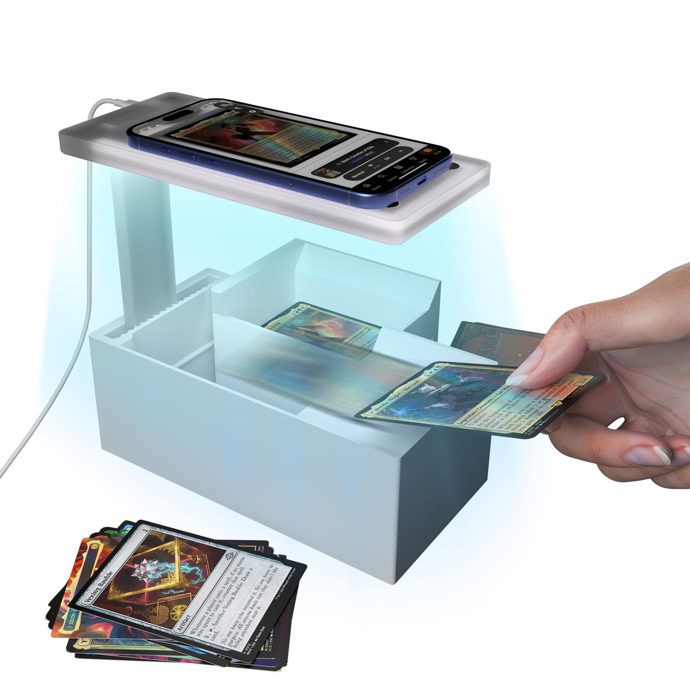LED Illuminated MTG Card Scanner Stand for ManaBox - 6000K Anti-Glare Lighting, Sloped Drawer, Phone Stand MTG Accessories, Only Available for ManaBox, Only fit for un-Sleeved Cards Only un-sleeved cards