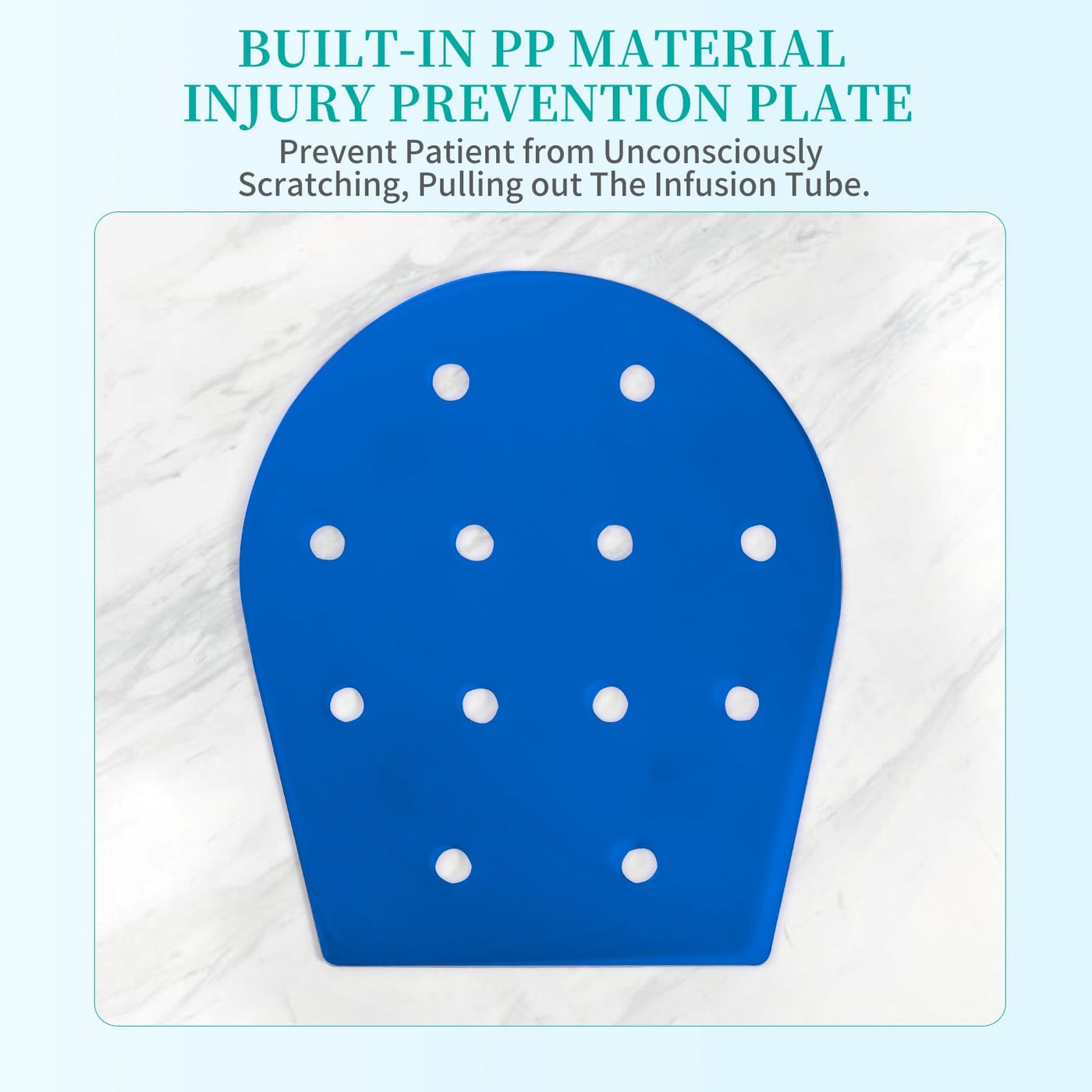 - The built-in PP material injury prevention board will not restrict the free movement of the patient's fingers, but can prevent the patient from unconsciously scratching, unlocking or pulling out the infusion tube.