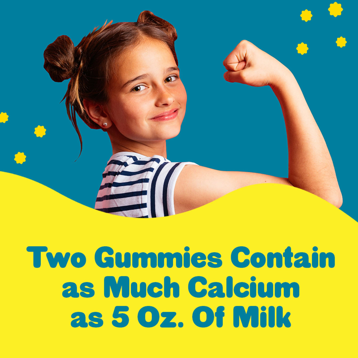 - Each two gummy serving contain as much calcium as a 5 oz. glass of milk