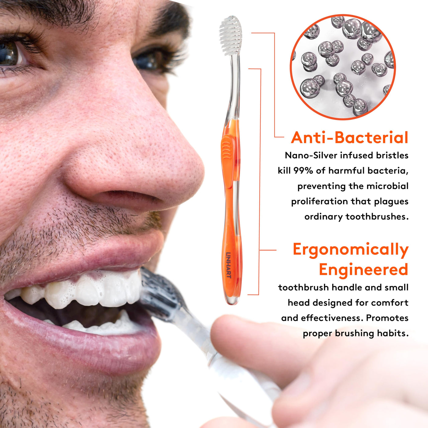 LINHART Extra Soft Toothbrush – Teeth Whitening Toothbrush (2 Pack, Orange and White) 3 Count (Pack of 2)