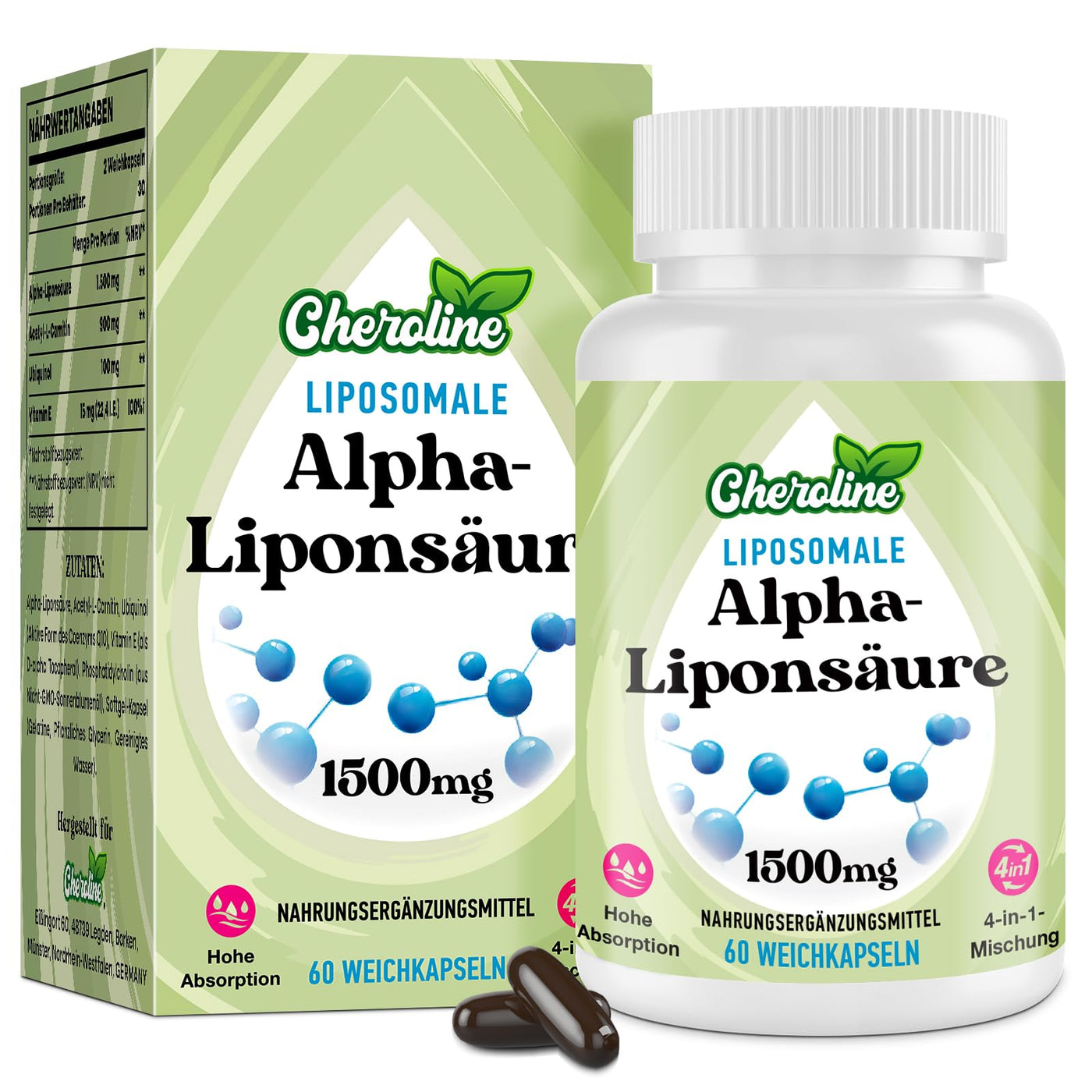 - Safe standard quality: Cheroline pure liposomal alpha lipoic acid products are allergen-free and free of artificial additives. Packaged in easy-to-swallow capsules with no unpleasant taste, our product meets different nutritional needs and preferences while prioritizing health and satisfaction.