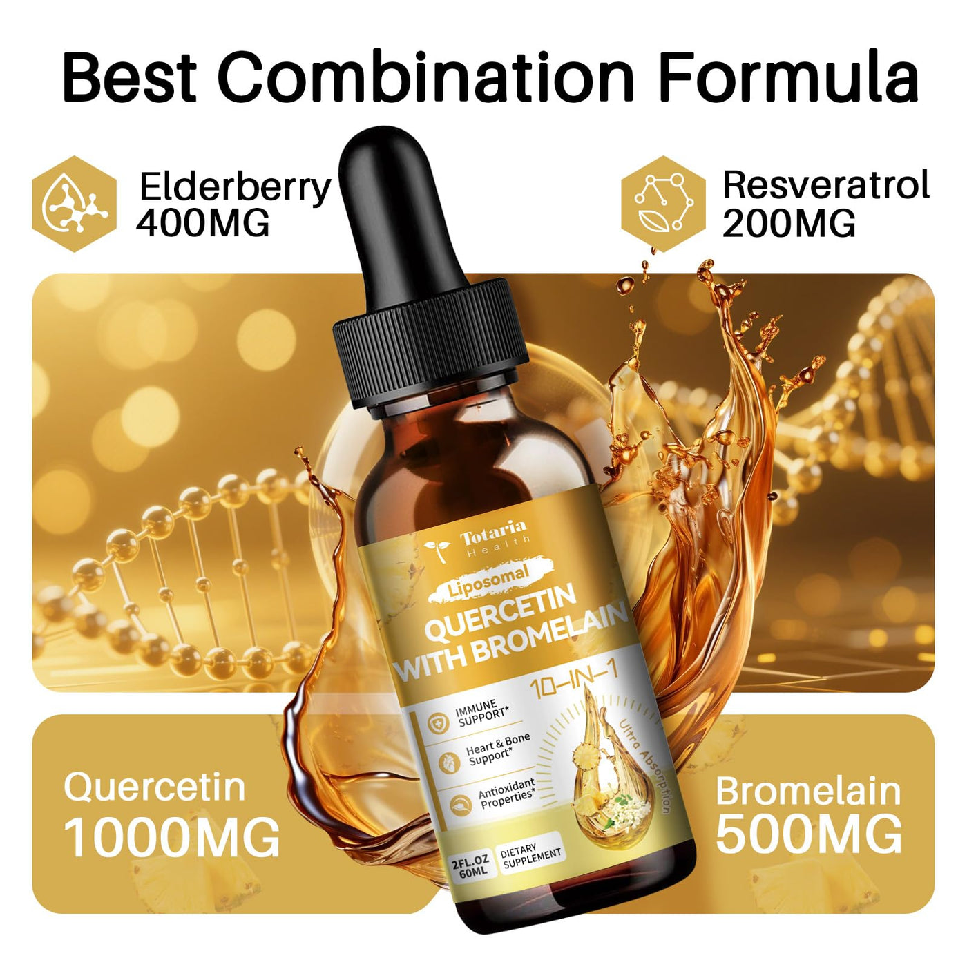 - IMMUNE SUPPORT - Enhance your natural defenses with science-backed ingredients! Quercetin with Bromelain Supplement Liquid Drops formula combines Quercetin with Bromelain, two powerful compounds that support healthy immune function, bromelain for bruising and swelling.