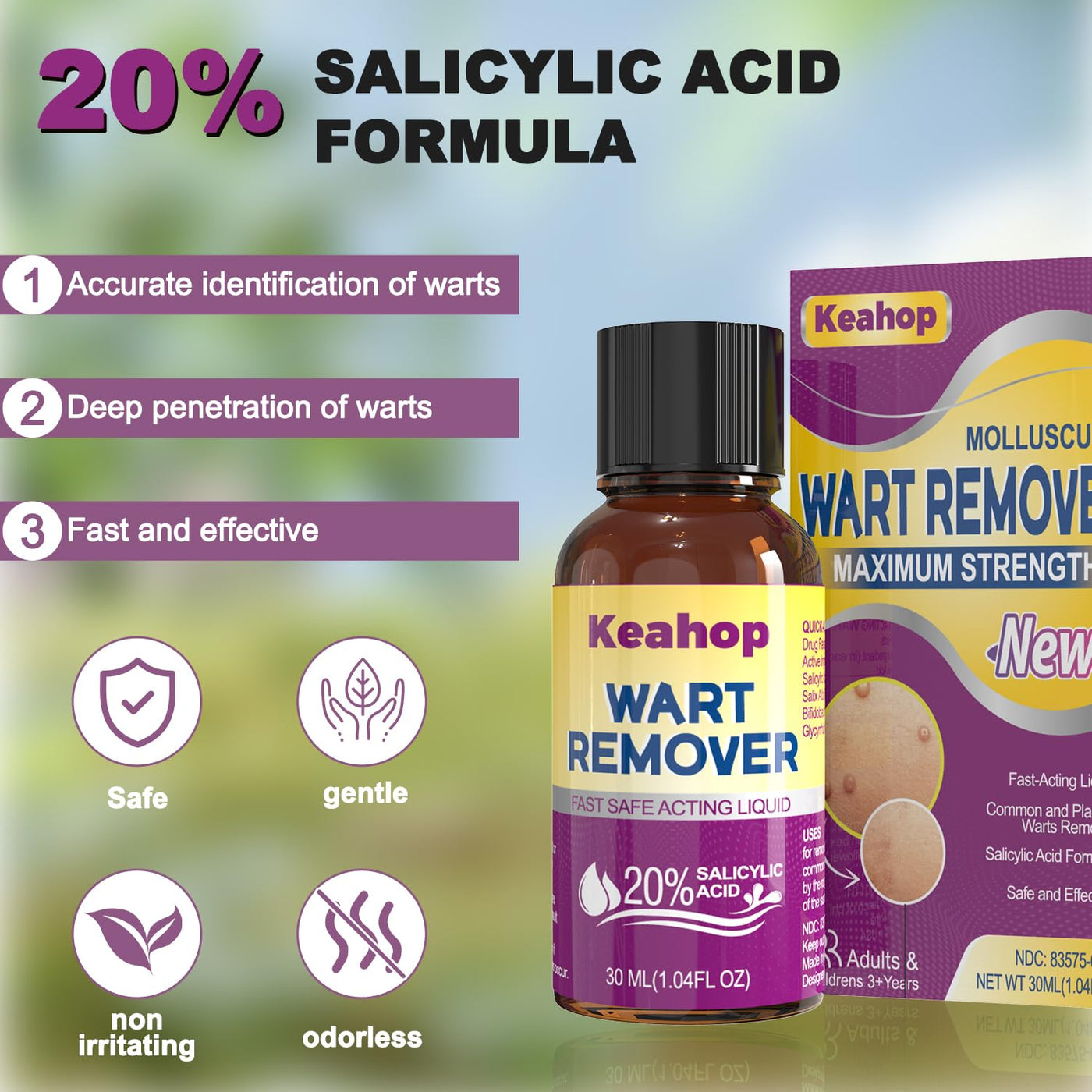 Liquid Wart & Corn Gel 30 ml, Maximum Strength Salicylic Acid Wart Liquid Fast-Acting for Plantar, Common and Flat,Safe for Children and Adults,1.04oz