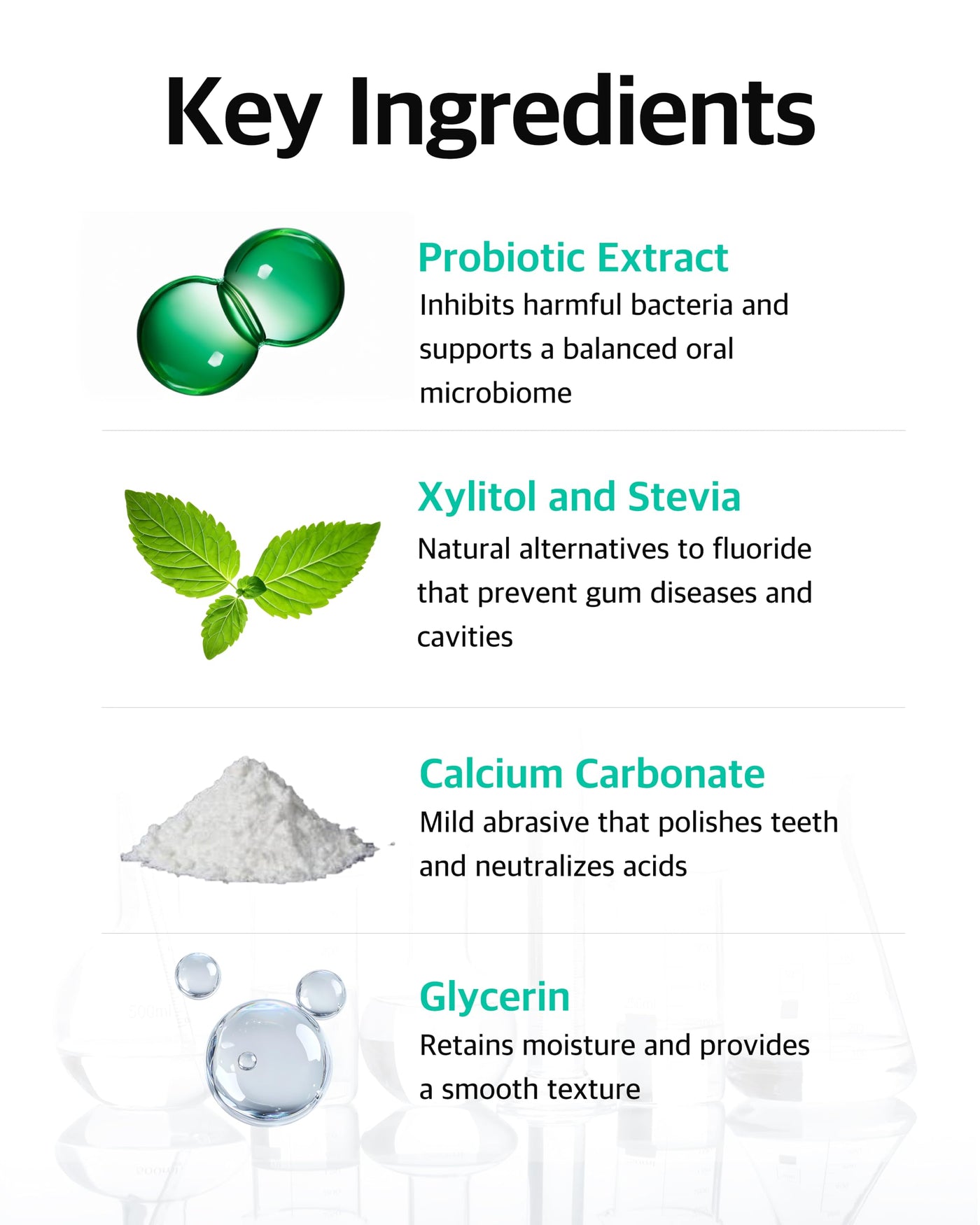 - Enamel Strengthening & Gentle Cleaning: Features precipitated calcium carbonate and probiotic ferment extracts for mild polishing, plaque control, and enamel support.