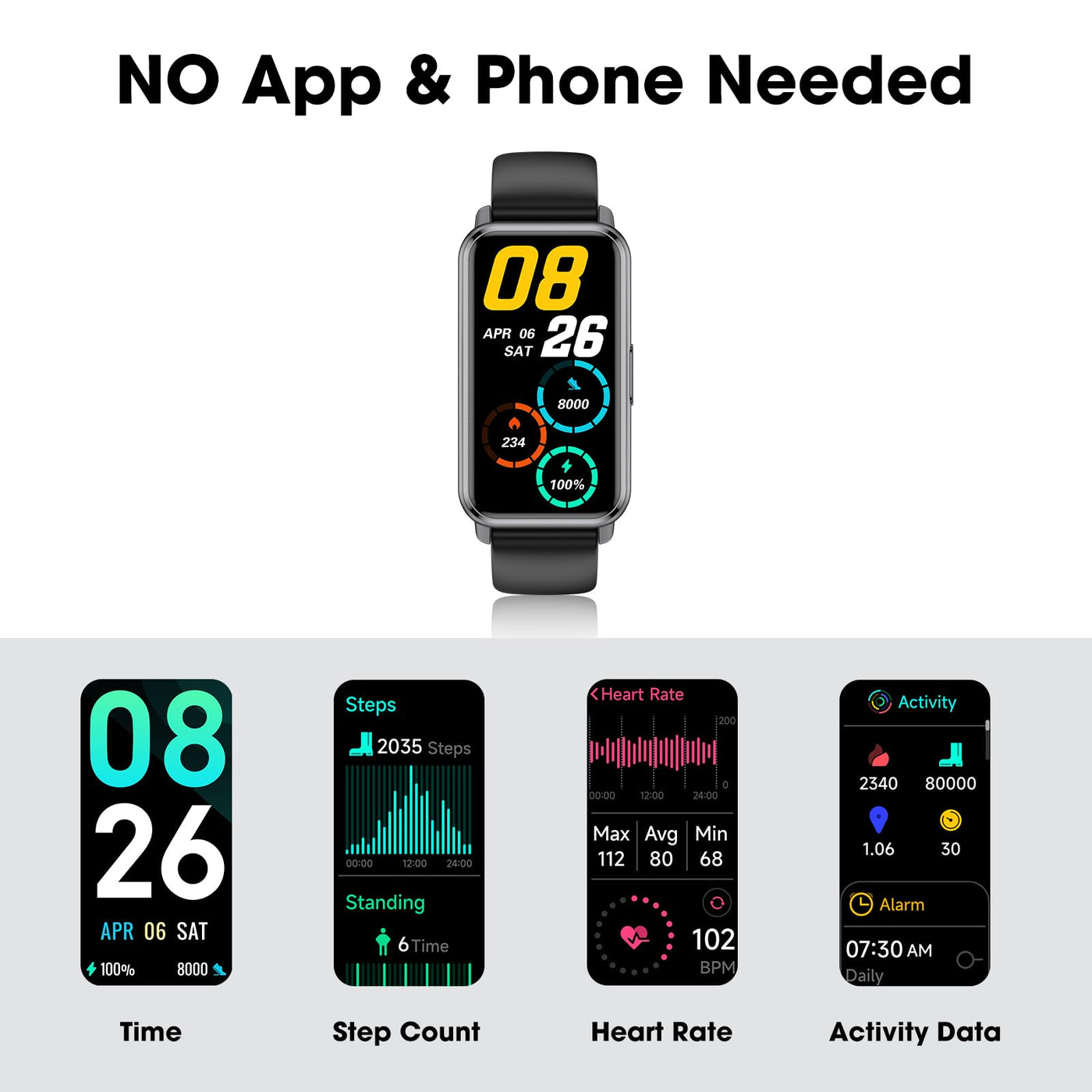- No App & Phone RequiredThis fitness tracker doesn't require any App or smartphone connections! It's as simple to use as a regular watch but smarter. Perfect for anyone who looking for an easy fitness tracker without the hassle of smartphone setups.