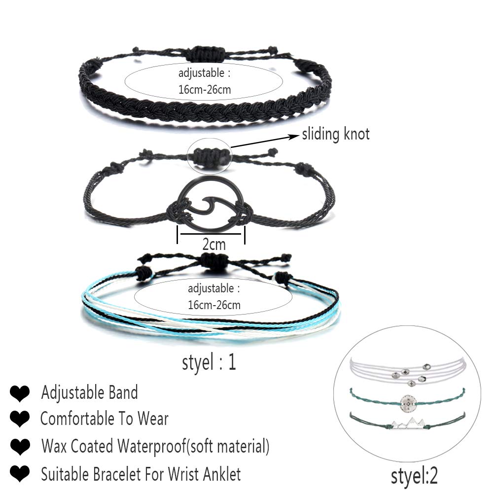 - WAVE BRACELET:The Bracelet use the wax-coated method to make strings, no need to fear getting wet, totally unique with special design, very suitable for your appearance, high strength, durable, suit for everyday dress.Even if you go surfing, swimming and the beach, the colors will not disappear.