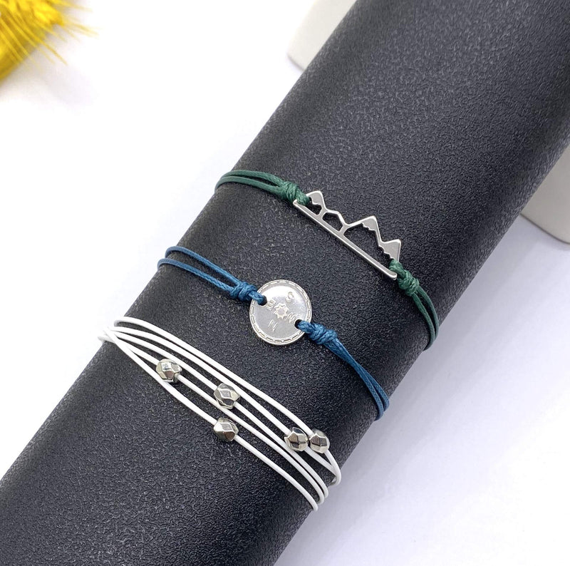 Long tiantian String Wave Bracelets for Women Adjustable Compass Bracelets Waterproof Handmade Strand Braided Rope Sunflower Boho Bracelet Set Women Teen Girls B-Wave+Sunflower+Mountain