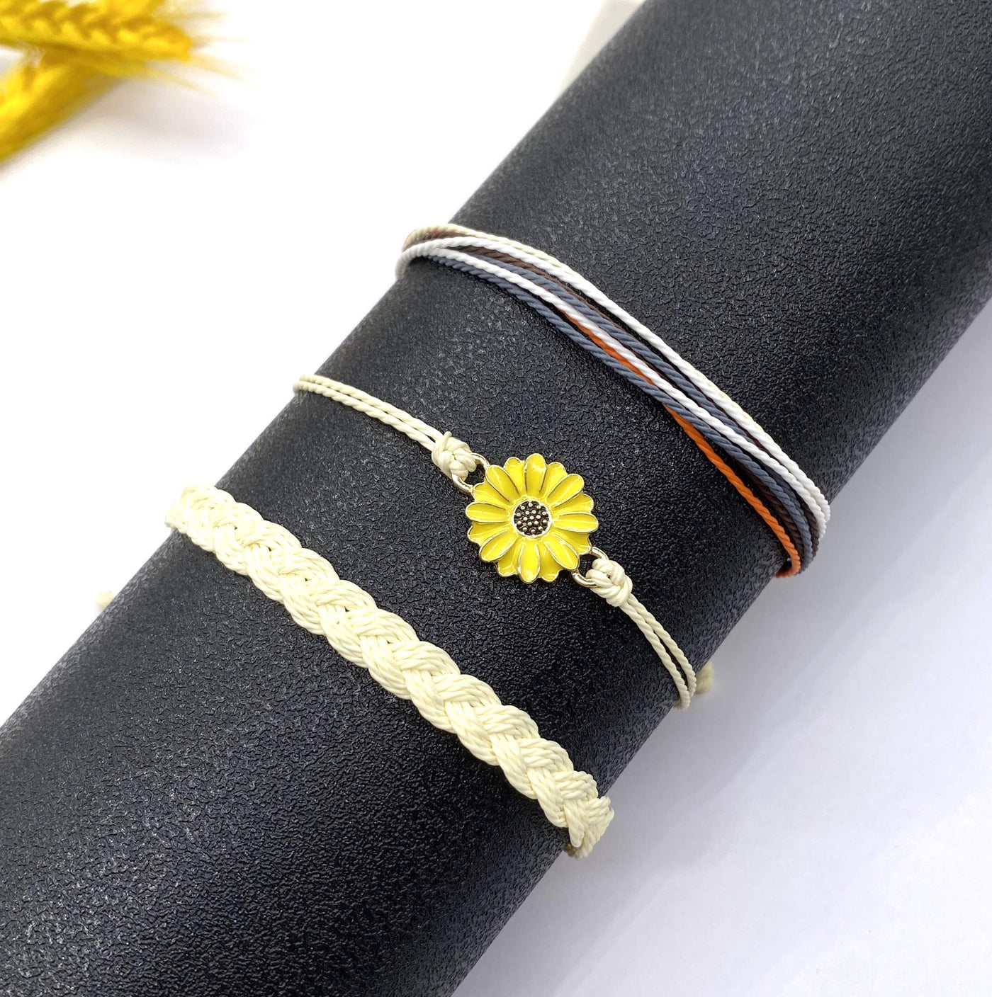 - 2.HANDMADE RRAIDED ROPE SUNFLOWER BRACELETS :sunflower bracelets have adjustable band from 7-12 inches in girth to fit you, comfortable to wear and take off, fit almost women teen girls.