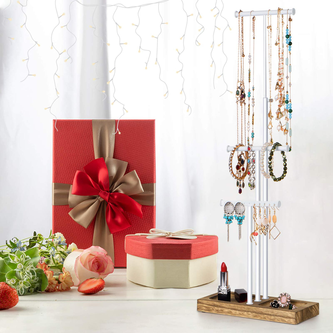 Love-KANKEI Jewelry Tree Stand White Metal and Wood Basic Large Storage Necklaces Bracelets Earrings Holder Organizer Jewelry Display White and Carbonized Black