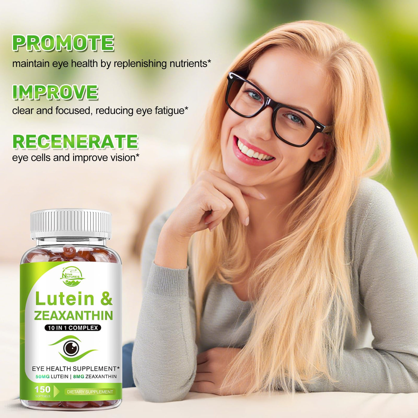 - 50MG LUTEIN & 8MG ZEAXANTHIN: High-potency lutein and zeaxanthin supplements. Each softgel delivers a robust 50 mg of lutein and 8 mg of zeaxanthin, naturally sourced from marigold and paprika extracts. These two macular pigments accumulate in the retina to help filter harmful blue light, support visual sharpness, and maintain daily eye comfort even during extended screen exposure