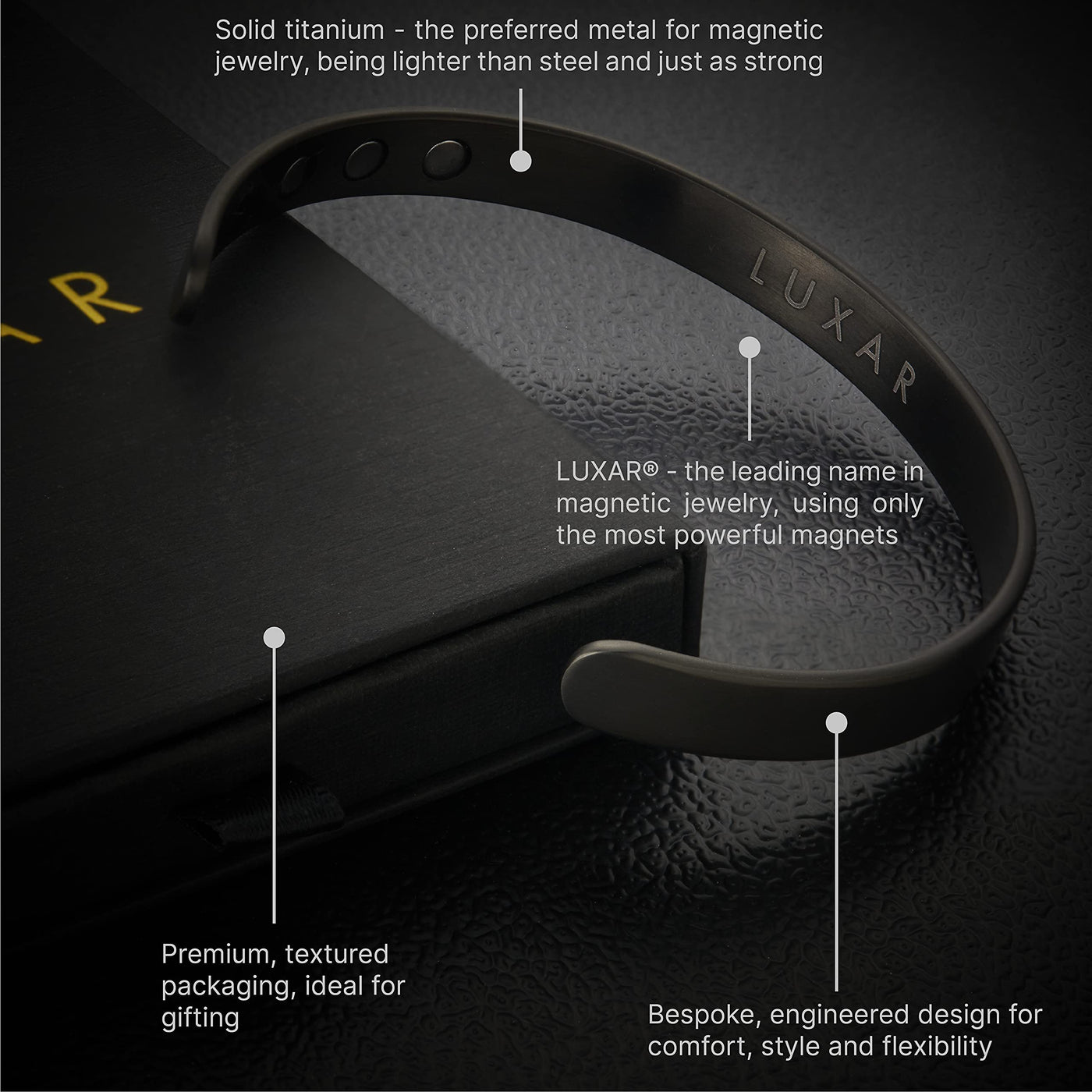 LUXAR Men's/Women's Magnetic Therapy Bracelet | Solid Titanium or Solid Copper | Sophisticated Solid Titanium Bangle with Rare-Earth Neodymium Magnets