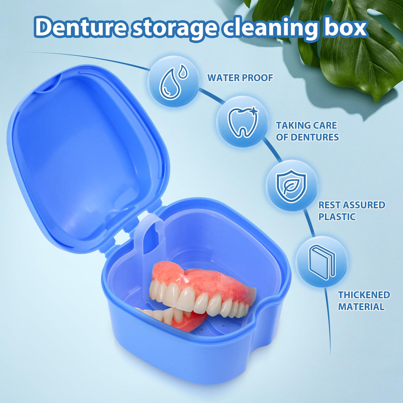 Luxoraiova 2 pieces denture box denture box denture box portable braces box denture box container storage box with hanging sieve for false teeth storage cleaning