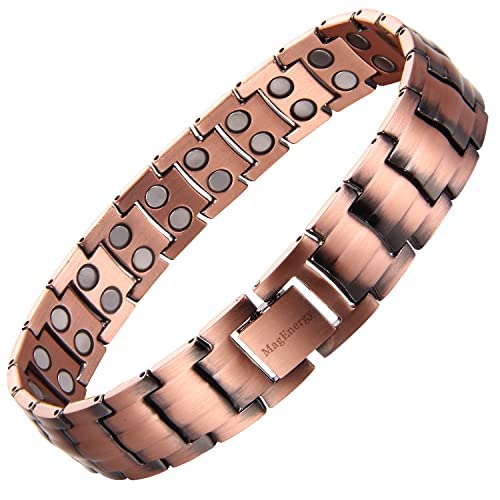 MagEnergy Mens Copper Magnetic Bracelets, 99.9% Pure Copper Bracelet with Double-Row Strength Magnets, Adjustable Jewelry with Sizing Tool