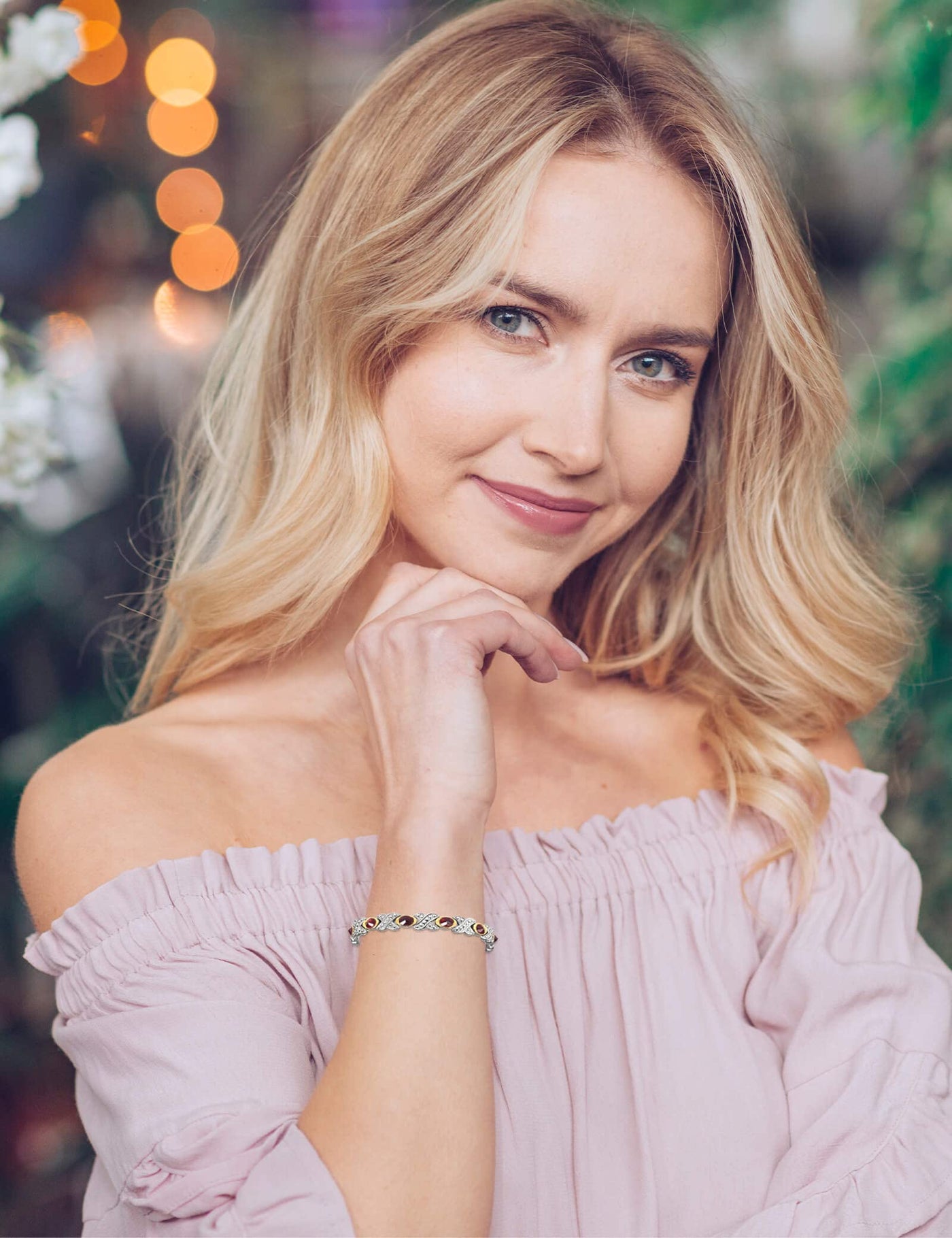 MagVIVACE Magnetic Stainless Steel Bracelet for Women, Amethyst Bracelet with Magnet