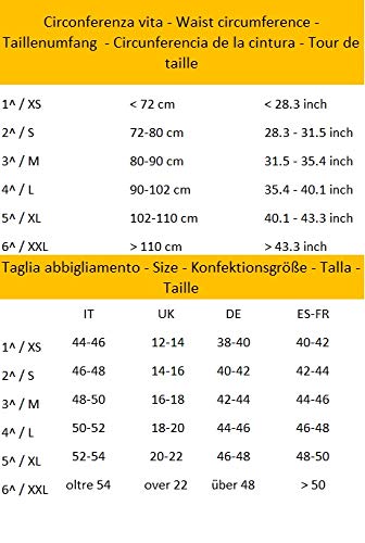White waist belt made of marino wool and cotton Height 31 cm Suitable for Conditions requiring heat therapy: colitis, abdominal pain, Lumbago, muscle pain. The high proportion of Merino wool ensures one good protection from the cold, while the cotton makes contact with the skin softer and makes it more pleasant. 100% Made in Italy Size Chart: Size 1^: Waist circumference under 72 cm, corresponding clothing size 38-40. Size 2^: waist circumference from 72 to 80 cm, corresponding clothing size 40-42. Size 3^: Waist circumference from 80 to 90 cm, corresponding clothing size 42-44. Size 4 ^: Waist circumference from 90 to 102 cm, corresponding clothing size 44-46. Size 5^: waist circumference from 102 to 110 cm, corresponding clothing size 46-48 Size 6^: Waist circumference over 110 cm, corresponding clothing size over 48