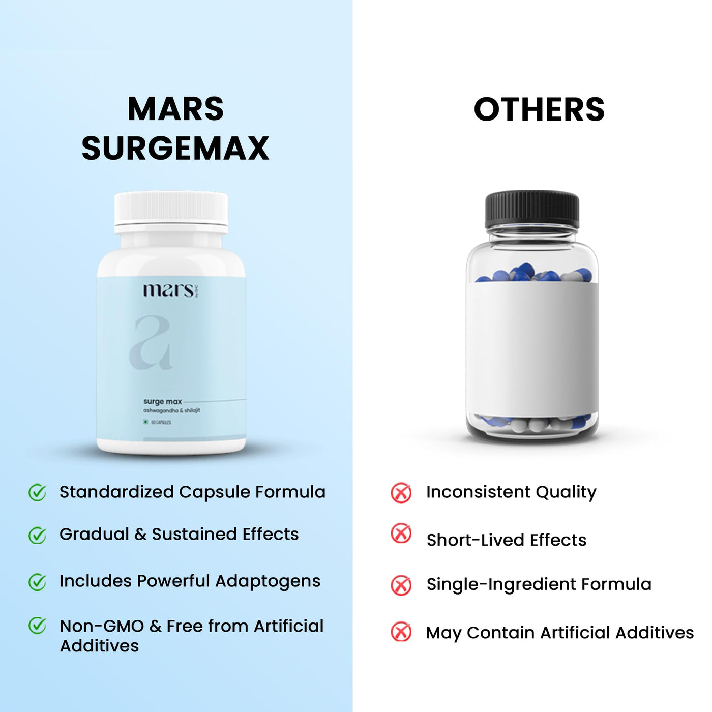 Mars Surgemax Natural Capsules with Shilajit & Safed Musli | Supports Energy, Strength & Immunity | for Active Lifestyle | 60 Capsules | Pack of 1