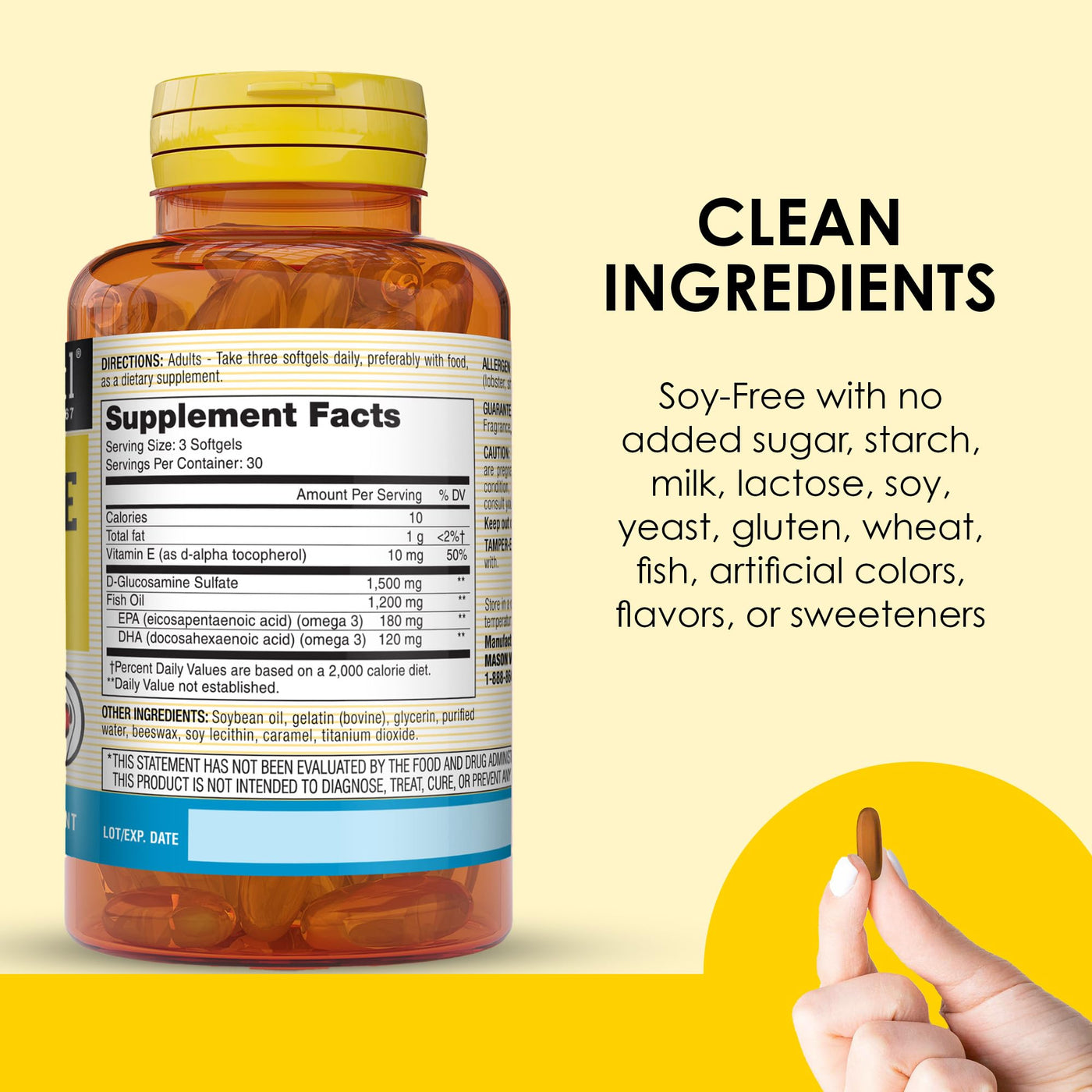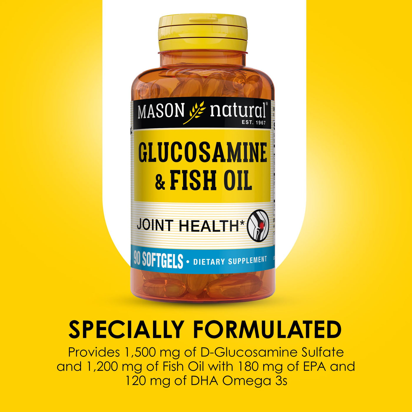 MASON NATURAL Glucosamine & Fish Oil Supplement with DHA & Omega 3 for Joint & Muscle Support, 1 Month Supply Softgel Pills