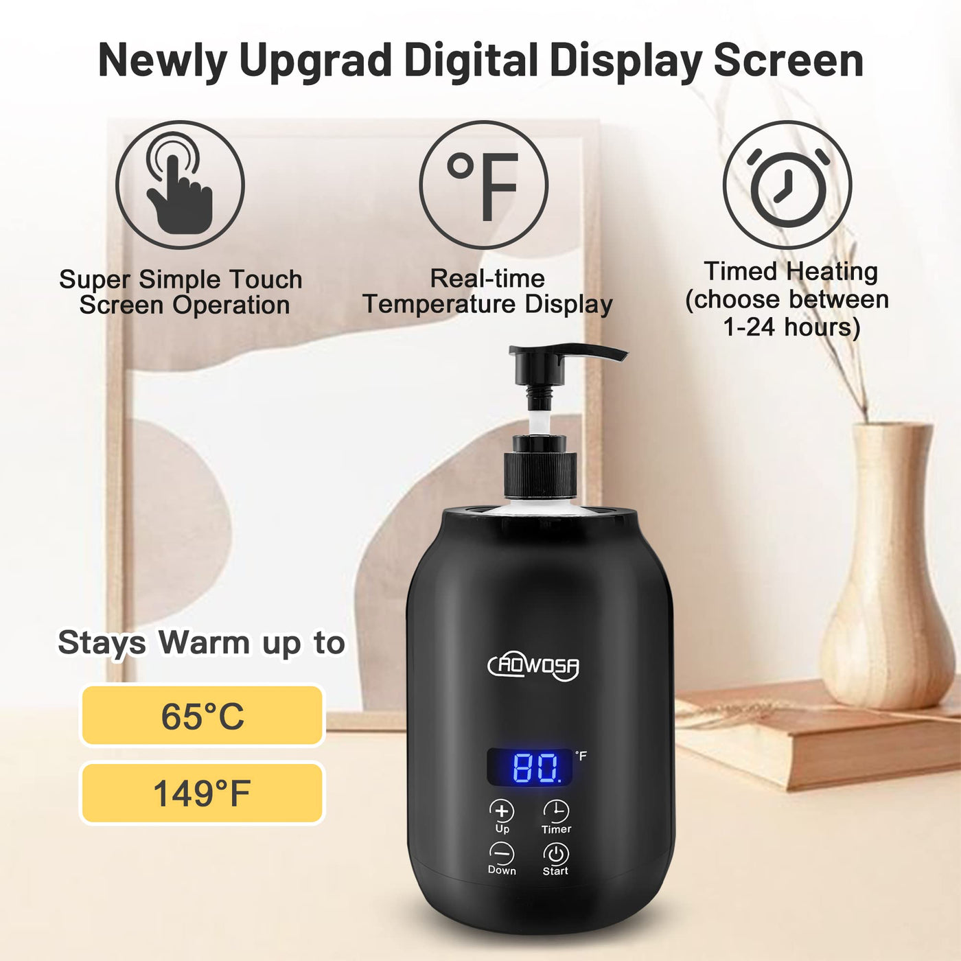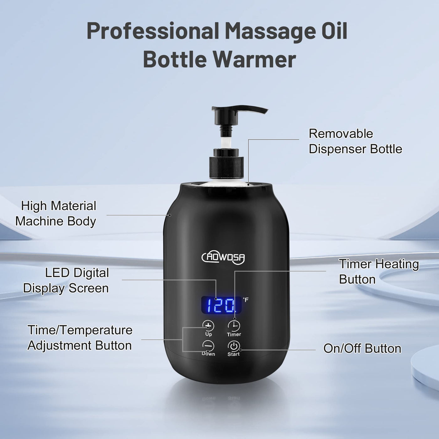 - Strong ApplicabilityAOWOSA massage oil warmer suitable for heating all kinds of massage oils, body lotions or creams, etc. Warm body lotion applied to the body is like warm soup that can soothe the soul.