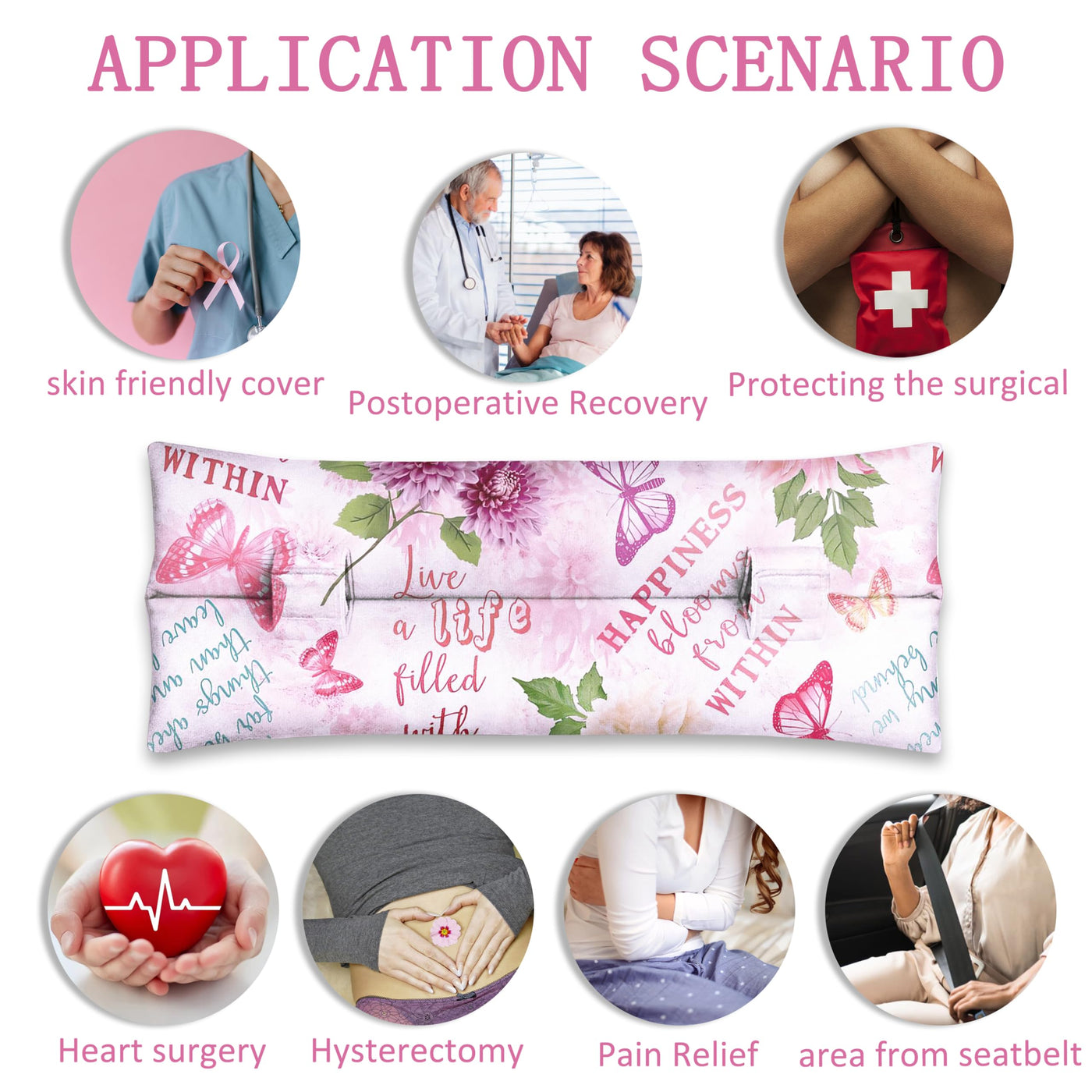 - Mastectomy Gifts: Our post surgery pillow design is unique and beautiful, which helps with postoperative recovery. We recommend that you purchase it before surgery or give it to your friends or family who have just undergone breast/heart/abdominal/hysterectomy surgery to express your care and support