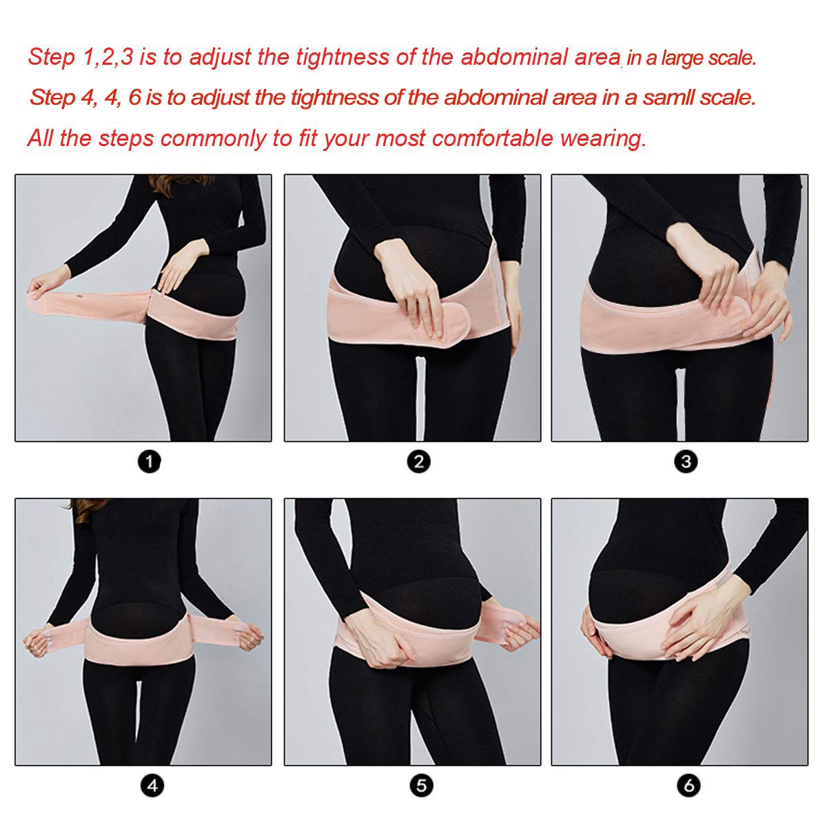 NEWEST VERSION MATERNITY BELT - IS ALL YOU NEED Are you Suffering from Back Pain when you're on the way of Pregnant?Are you Experiencing Pelvic Cramps?Are you Constantly Holding Up your Belly? Feels Like it's Going to Fall?This Two in One Maternity Belt, will rescue you! WHAT CAN IT WORK FOR For All Stages: Whether you're in Pre Motherhood, Post Pregnancy, or Late Stages of Maternity, Pregnancy Pain and Weight Stress is Taxing, and our Pregnancy Belt will provide you much relief!For All Sizes: From Size Small to Plus Size, this adjustable maternity support belt provides pelvic, abdominal, and back support and will relieve back and pelvic pain regardless of size or shape.For Fitness: Want to maintain your fitness and continue exercising? This Pregnancy Belly Band is designed with breathable non-slip non-itch fabric, allowing you to move and exercise freely!For Freedom: Our Pregnancy support belt will free up your hands - The added tummy support will relieve you from constantly holding your belly upright while performing sports, working out, or other daily activities - you will gain more movability and free range. Washable & Strong Adhere Our washable super-strong velcro technology is built with stretchable fabric. Tip: Wear the Support Belt on your clothes for extra comfort. Strong Material Our maternity belt is inbuilt with memory steel bones to strongly support your back. Tip: Get into a regular light exercise routine to keep yourself physically.Practice meditation to keep a calm mood and prepare yourself for labor.Take deep breaths in counts of five if you feel shortness of breath. Grear Support It's designed to help relief your back pain, especially when working or walking. Tip: We recommend you to use the Maternity Belly Belt after 24 weeks’ pregnancy. You may start from week 21 if you are experiencing pains. Read more