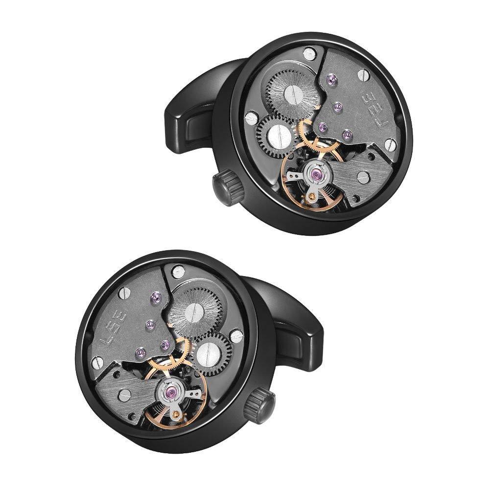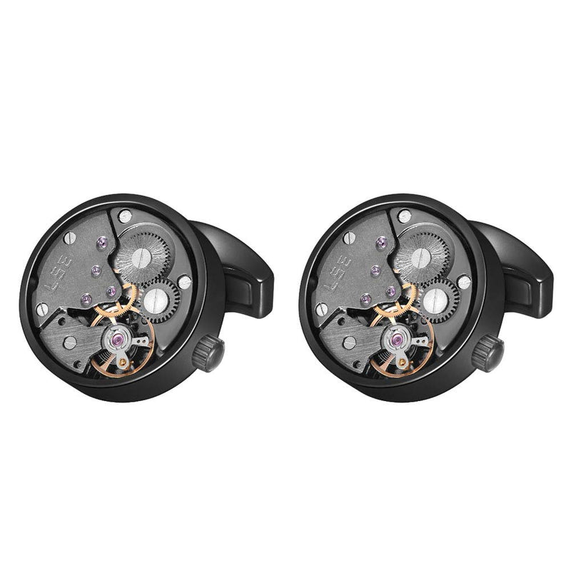 MERIT OCEAN Cufflinks Steampunk Watch Movement Shape Cufflinks for Men Mens Shirt Vintage Gears Watch Cuff Links Business Wedding Gifts with Gift Box Black in the middle
