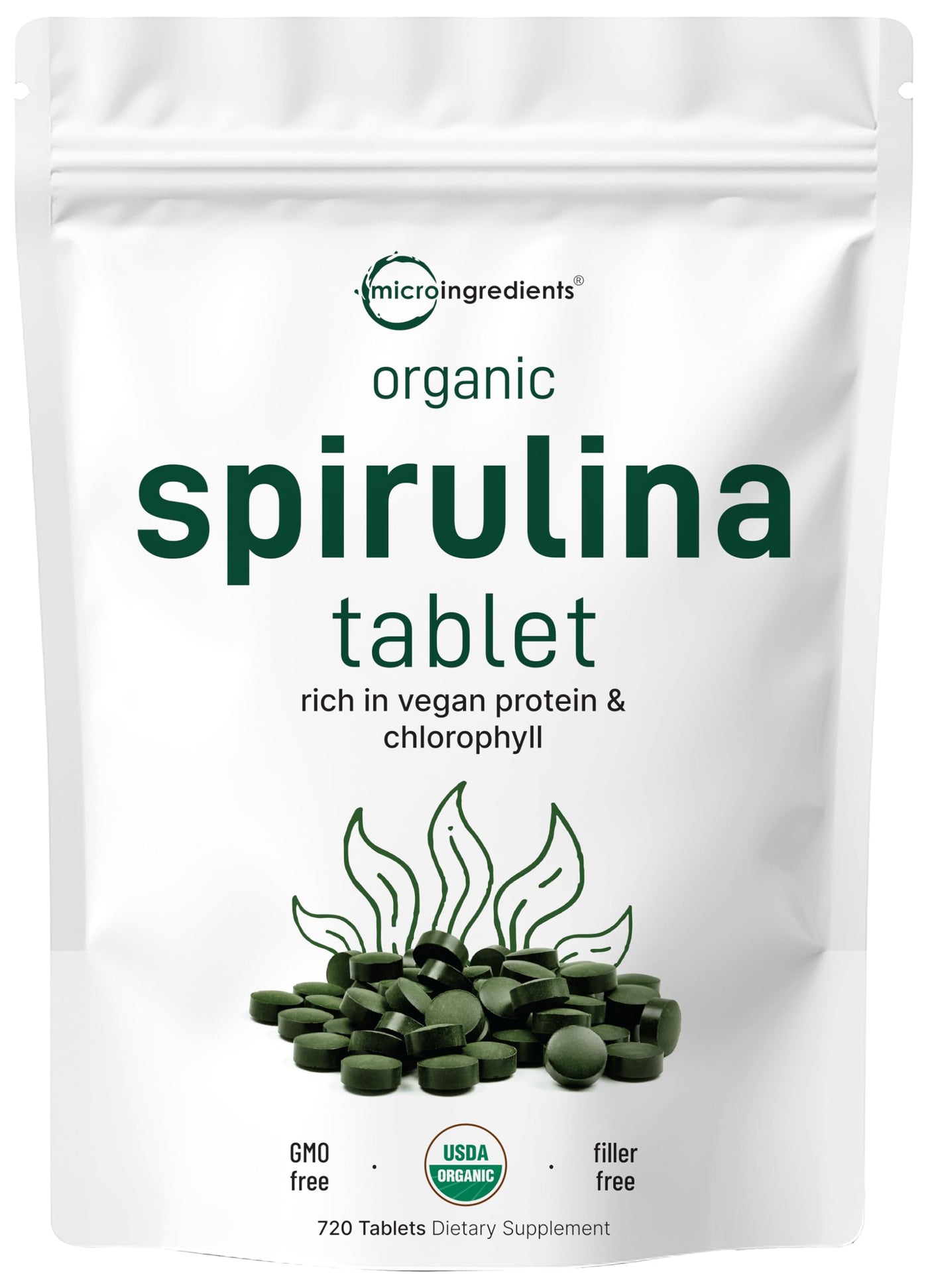 Micro Ingredients Organic Spirulina Supplement, 3000MG Per Serving, 720 Tablets (4 Month Supply), No Filler & Non-GMO, Rich in Vegan Protein, Vitamins & Prebiotics, Premium Spirulina Pills