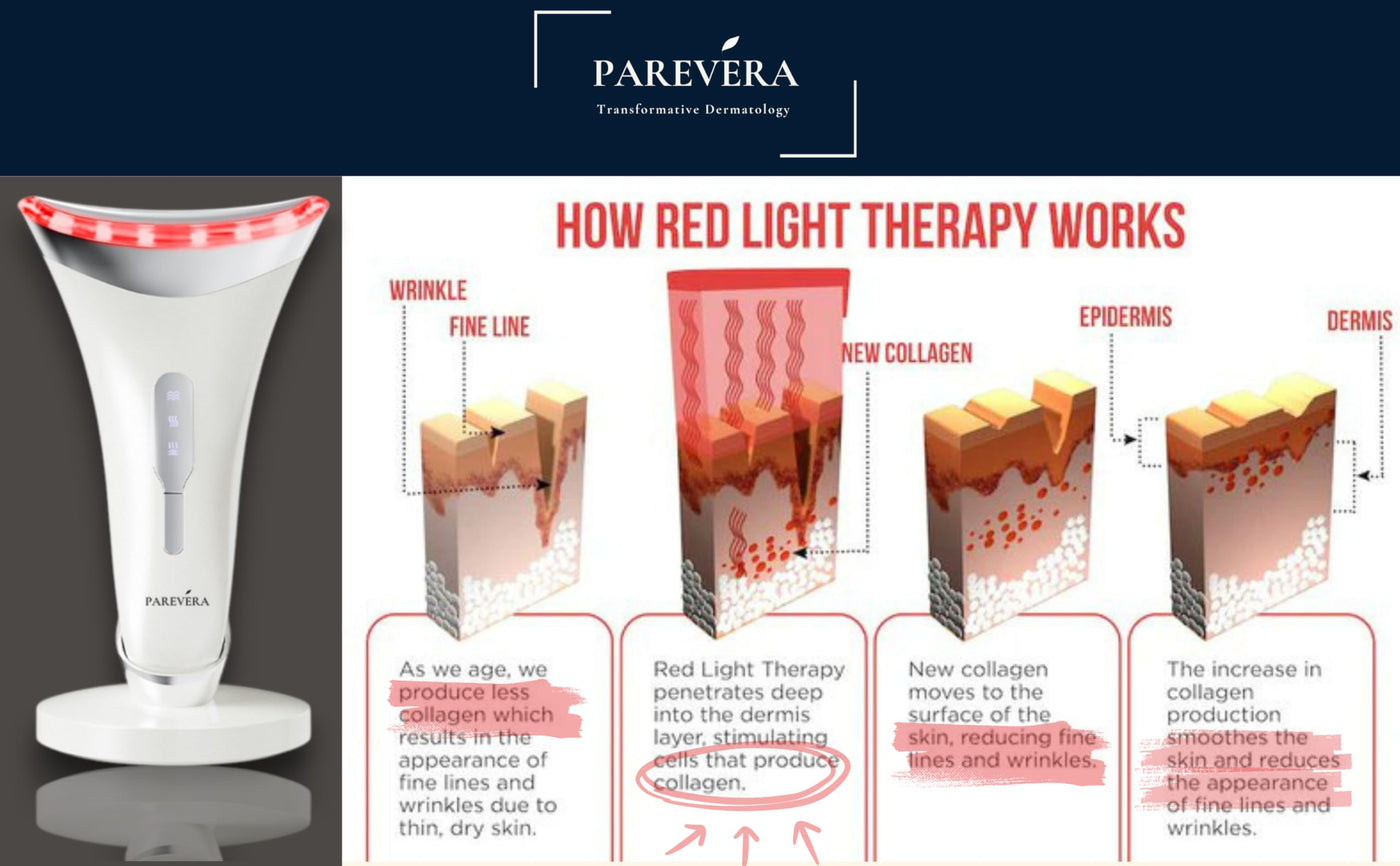 PARÉVERA: Microcurrent-Inspired Warmth for a Radiant AppearanceElevate your at-home skincare with the PARÉVERA Microcurrent-Like Heat & Soft Vibration Facial Massager—a subtle blend of mild warming, three LED glow modes, and soothing vibrations crafted to refresh and refine the look of your face and neck. No professional appointments required.Key BenefitsMicrocurrent-Inspired Warmth (up to 45 °C): A gentle heat that coaxes skin toward a smoother, more supple appearance. Pair it with serums or moisturizers for a collagen-friendly glow.3 LED Color Modes—Red, Blue & Green Red LED: Adds a lively glow, helping your complexion look revitalized. Blue LED: Creates a calming ambiance for balanced, even-toned skin. Green LED: Subtly brightens, leaving skin appearing clearer and more refreshed.Soothing Vibrations: Gently target tension zones; a purely cosmetic touch that can soften the appearance of fine lines and refresh your overall complexion.Designed for Effortless LuxuryLightweight, cordless & USB-C rechargeable—perfect for a 10-minute morning glow-up or calming night- time ritual.Sleek standing charger keeps your device ready on desk, vanity, or bedside.Why Choose PARÉVERA?Microcurrent-Like, Non-Clinical: Warmth and vibration reminiscent of high-end spa devices—strictly cosmetic.Collagen- Friendly Glow: Mild heat and gentle vibrations complement your existing products for a refreshed look.Customizable LED Modes: Tailor each session to your skin’s daily needs.Travel-Ready Elegance: Pamper yourself anywhere—desk, hotel, or cozy couch.Reclaim your glow with the PARÉVERA Microcurrent-Like Facial Massager—where modern skincare inspiration meets indulgent comfort.Disclaimer: This product is intended for cosmetic and relaxation purposes only. It is not a medical or ultrasonic device and does not diagnose, treat, cure, or prevent any condition.